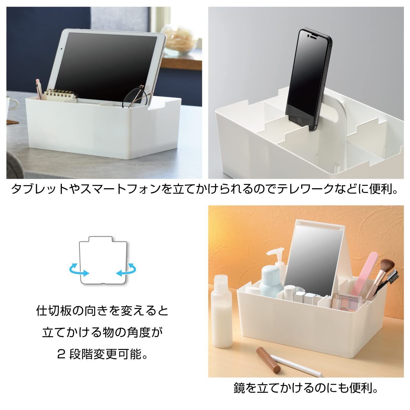 ●タブレット・スマートフォンを立てかけられるので、テレワークなどに便利です。
