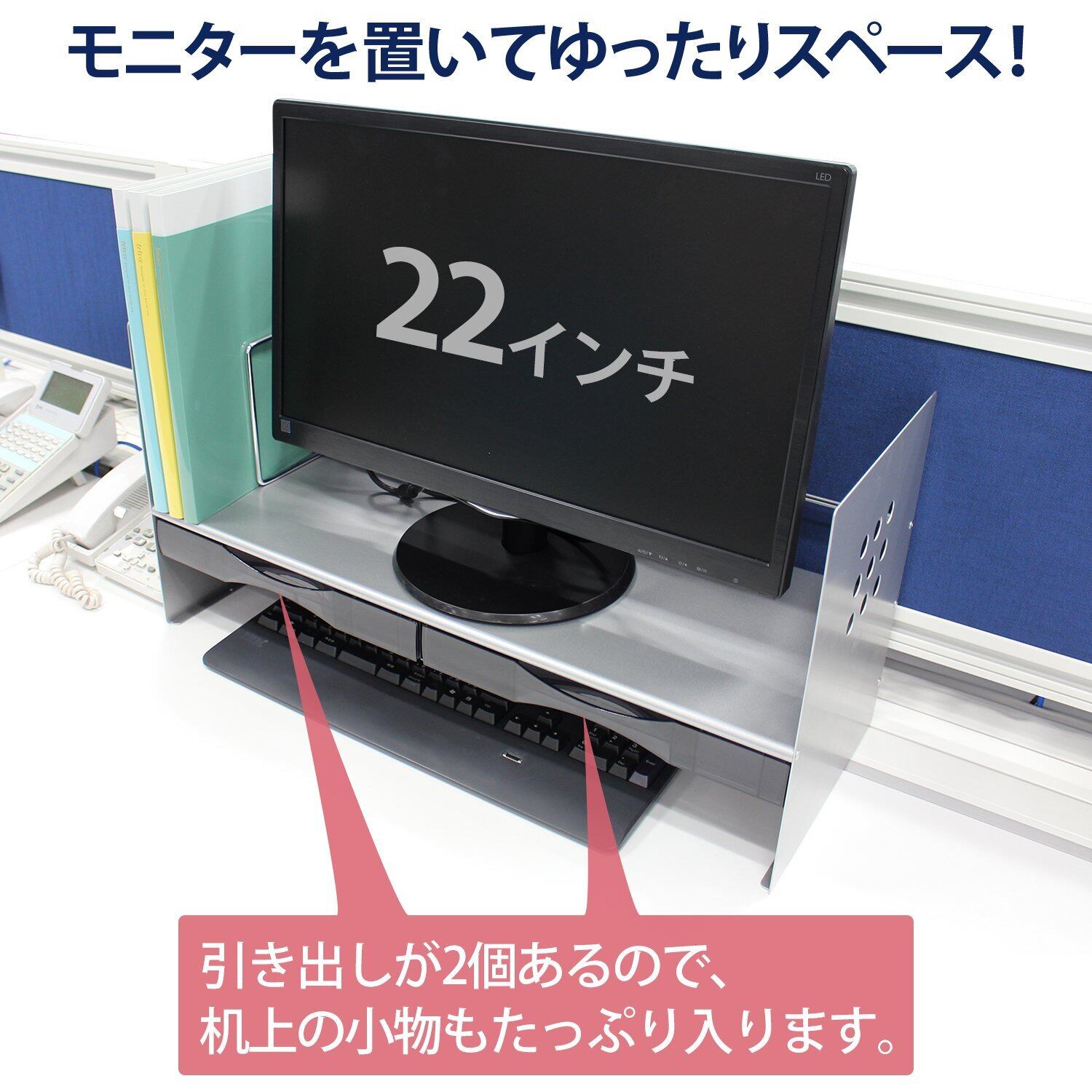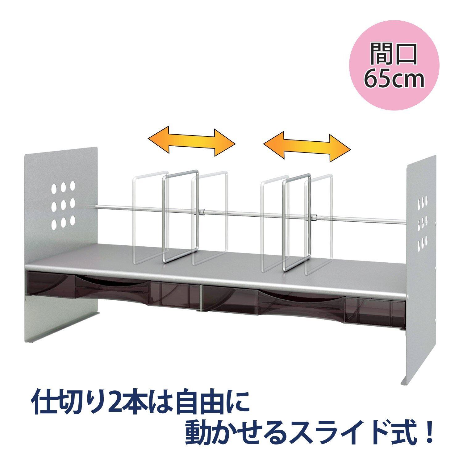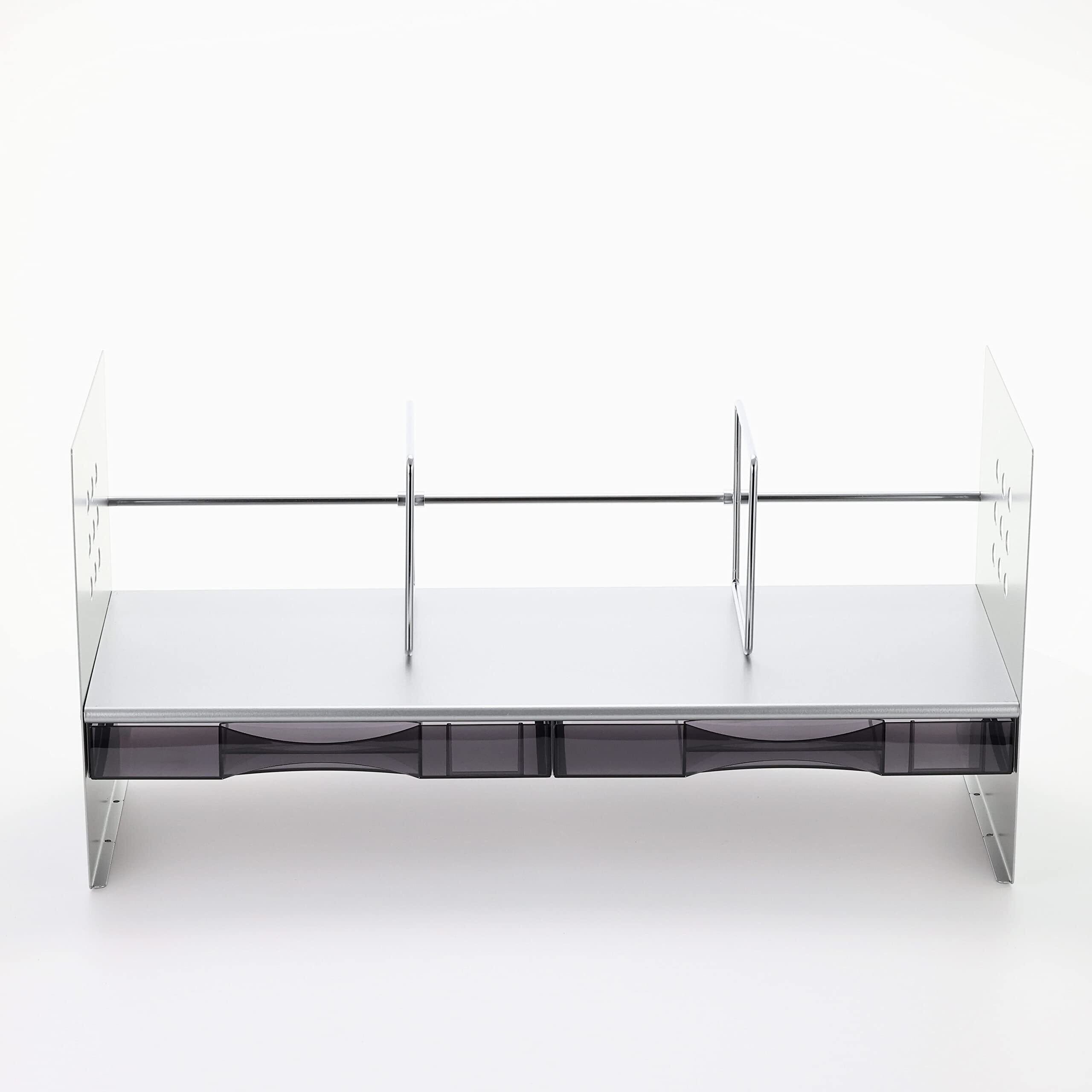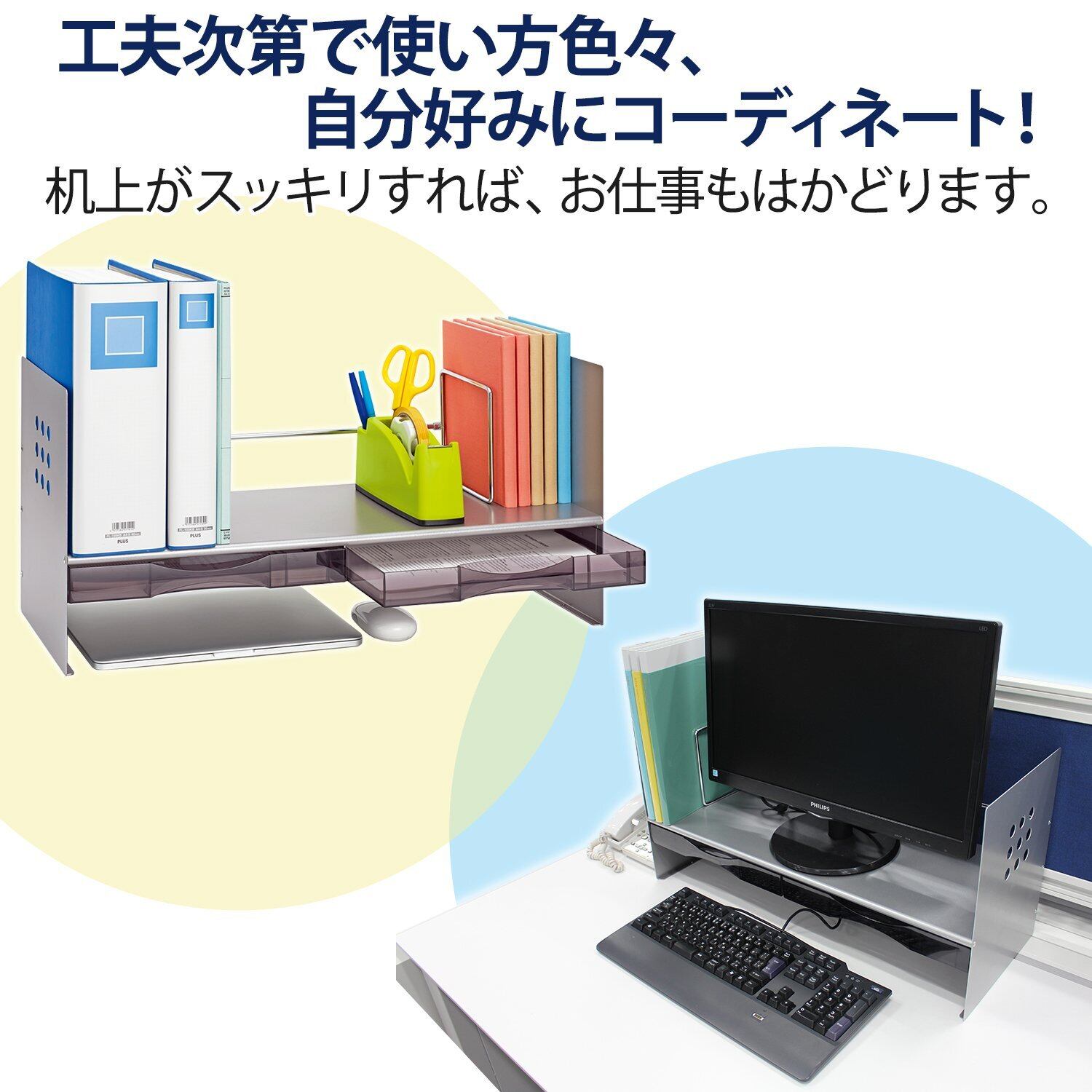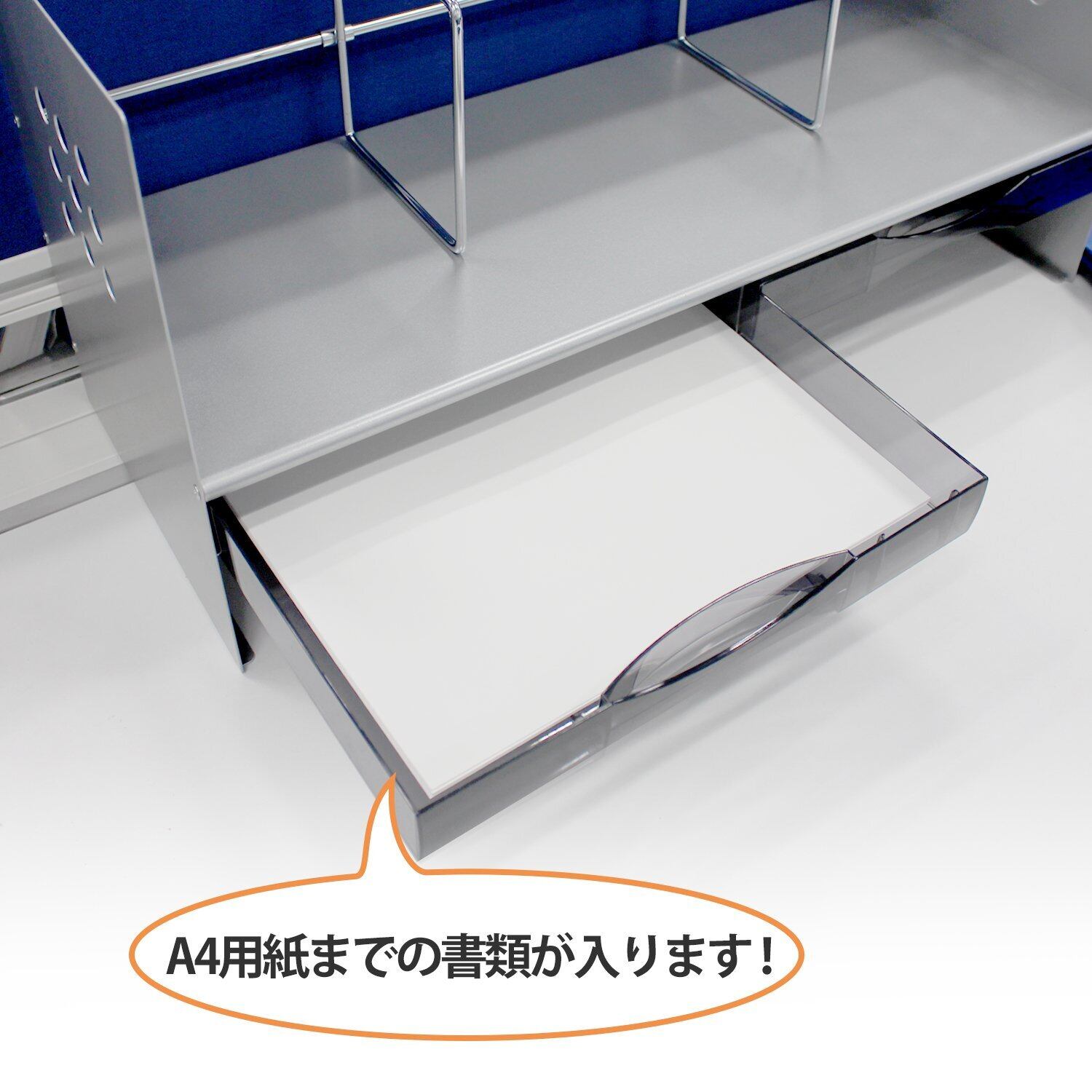 ●仕切棒は、調整できるスライド式。●高級感のある丈夫なスチール製ブックスタンド。●A4までの書類や小物の収納に便利な引き出しケース付き。●ケース下の空間にはラップトップやタブレット端末の収納が可能です。●ゴム足付き