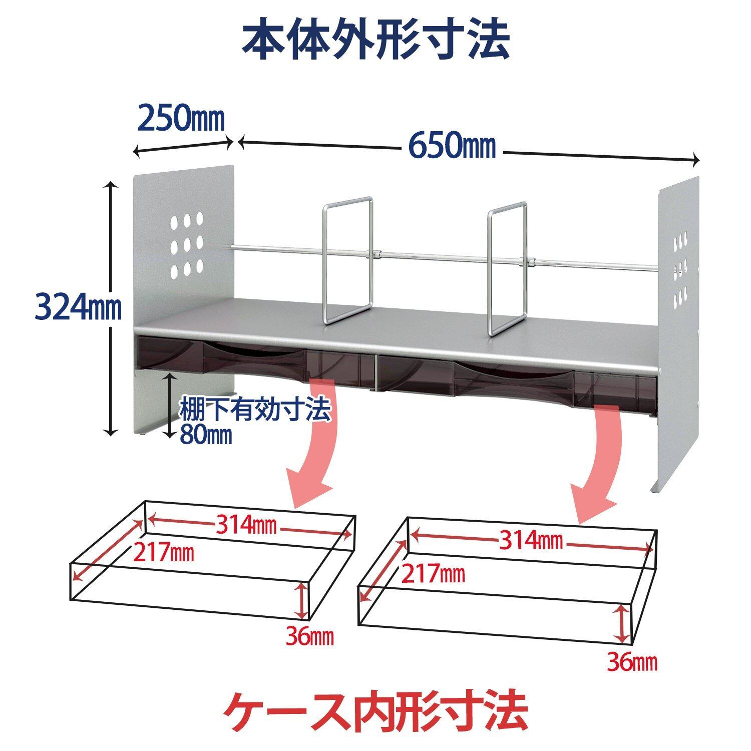 規格:H型ケース付 / 質量:5.4kg / カラー:シルバー / 本立仕切棒:スライド式2本 / 収納有効寸法:W635×D240mm
