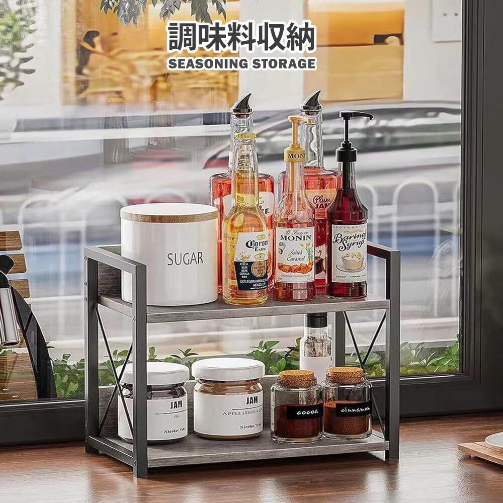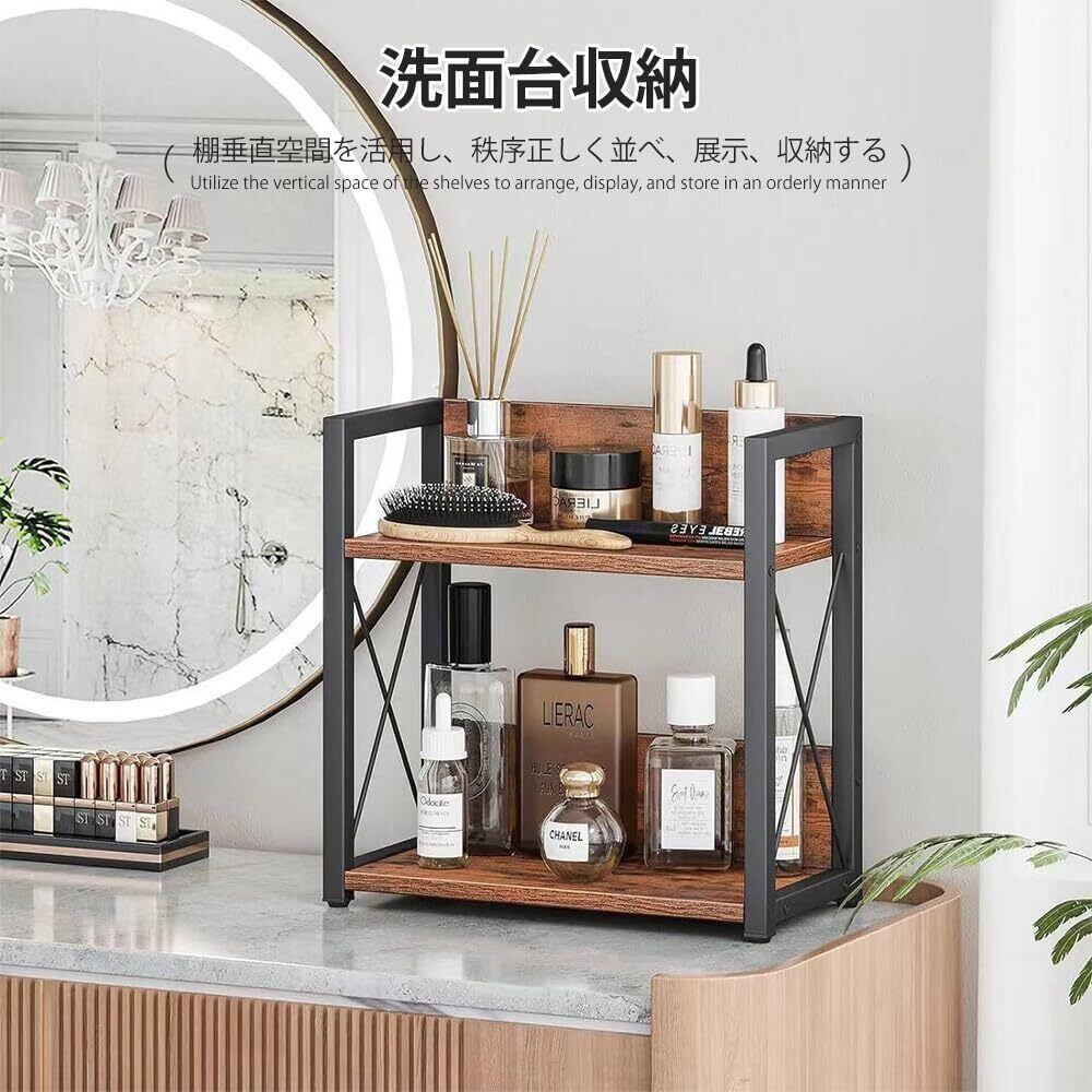 卓上 本棚 ラック デスク収納 棚板高さ調節可 2段 机上台 キッチン収納 調味料ラック ノート パソコン台 卓上 (復古, 幅33×奥行16×高さ26㎝)