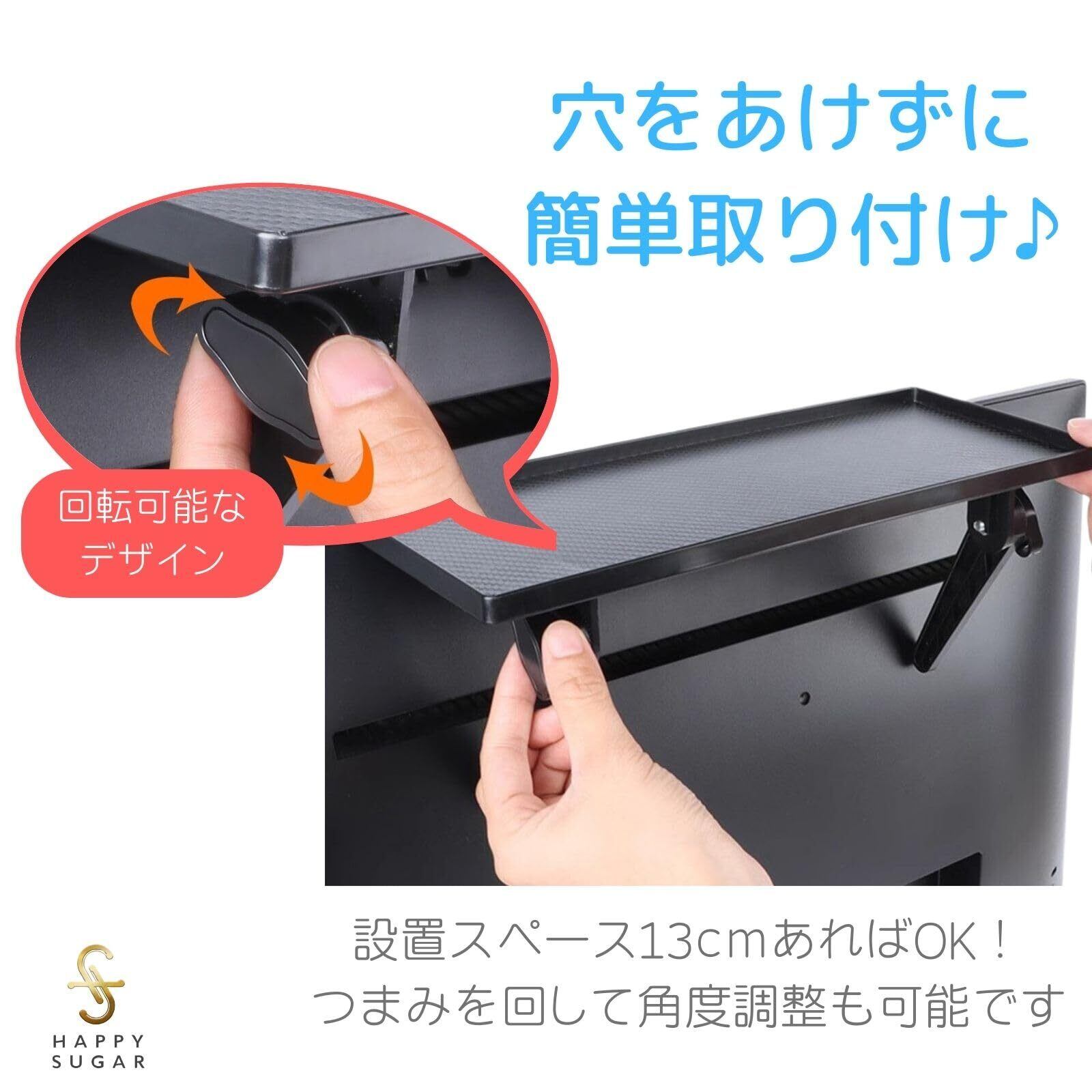 【新着商品】HAPPY SUGAR ディスプレイボード 棚 上 小物置き モニター テレビ裏収納ラック リモコン置き 机 拡張 後付け 耐荷重5kg(単品)