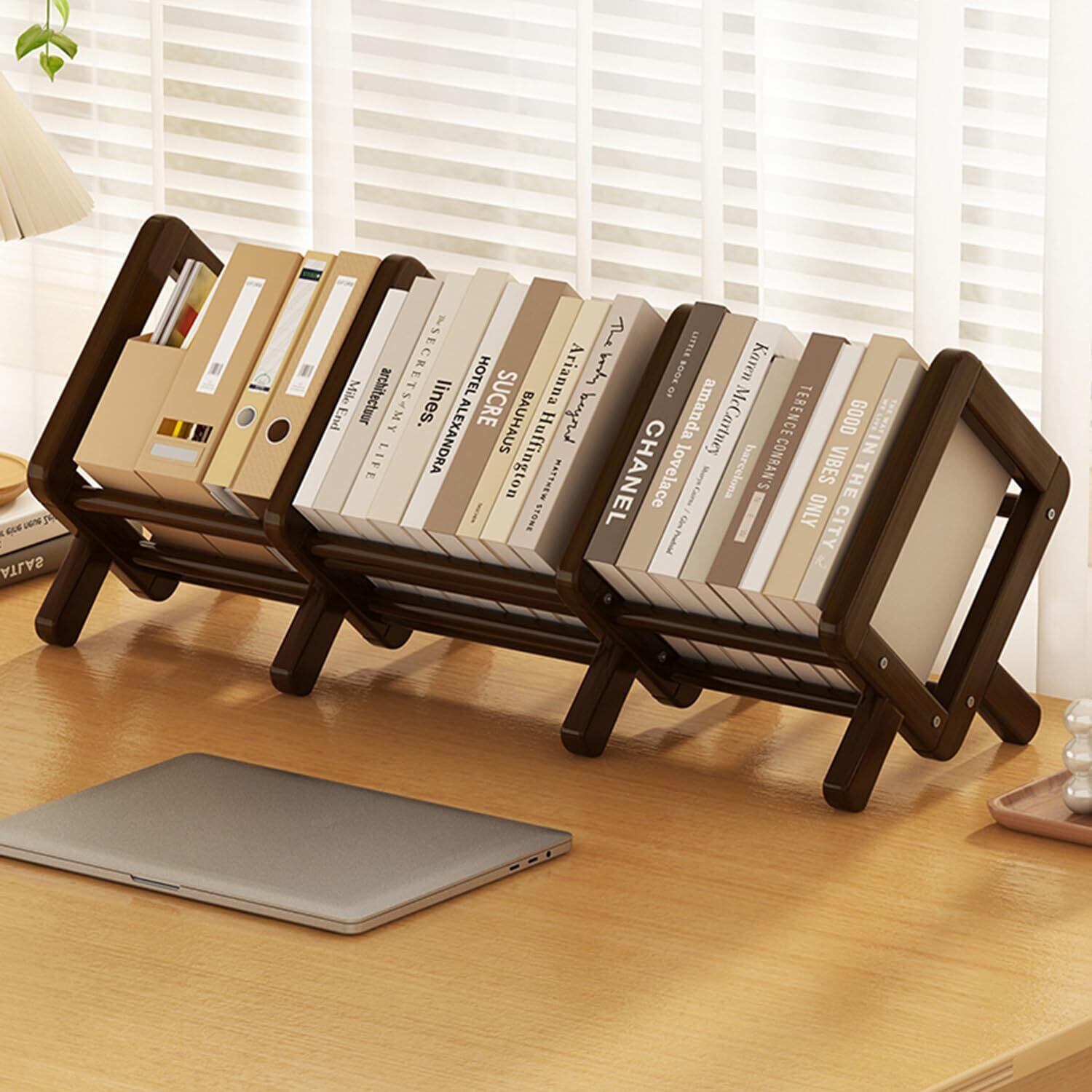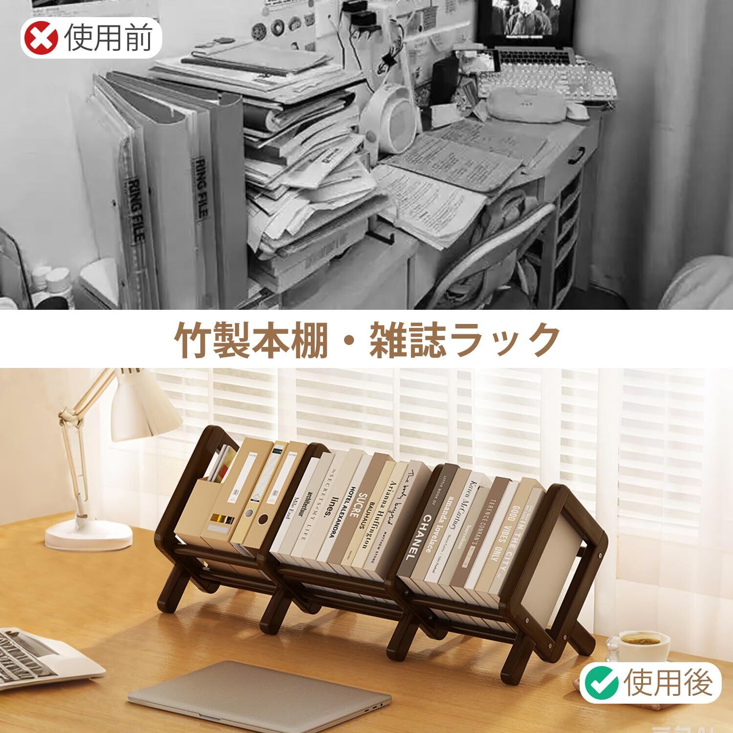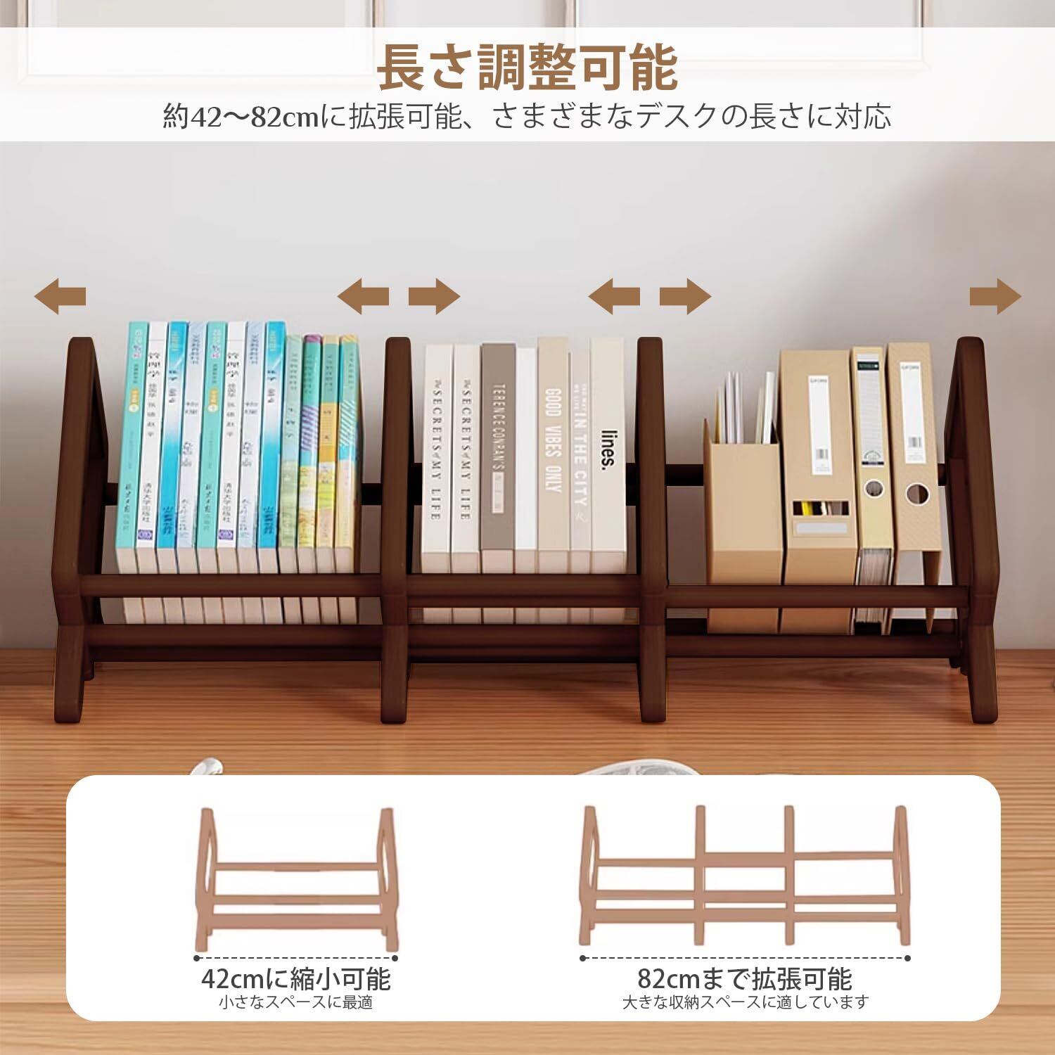 【新着商品】デスク上置き棚 本棚 伸縮型 デスク上収納ラック 本立て 書類入れ ブックスタンド 整理整頓 幅42~82cm*奥行22cm*高さ25cmブラウン