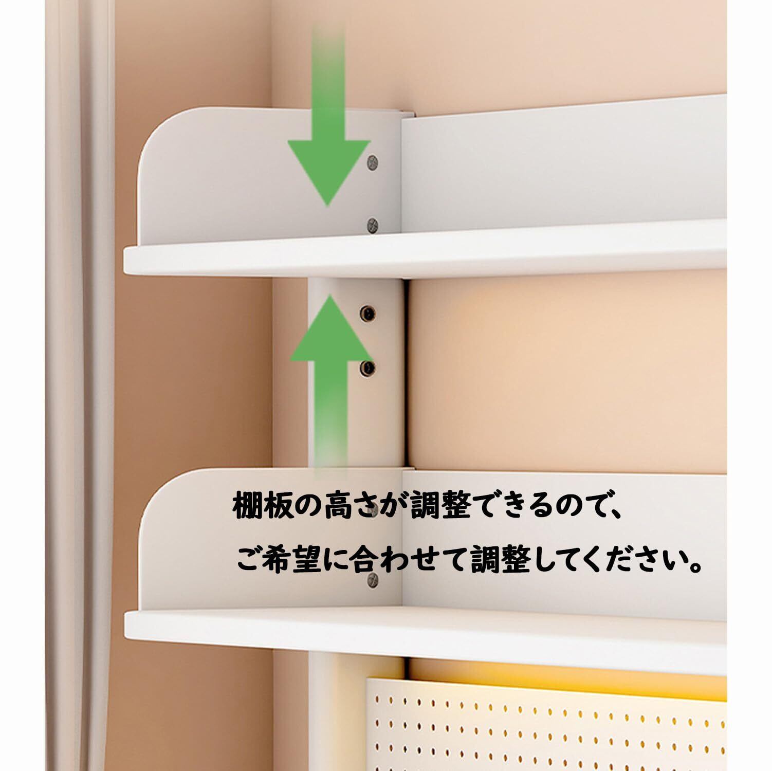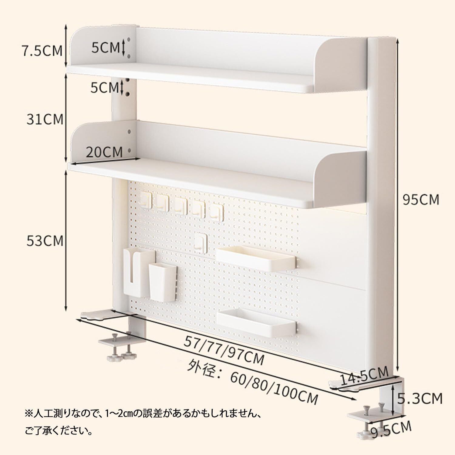 【高品質な素材】 この机上置き棚は、耐久性の高い炭素鋼を使用しています。通常の文房具やファイル、本などの小物を載せるだけでなく、書籍や資料の物品も本棚収納できます。炭素鋼はキズや汚れに強く、長期的な使用にも耐えられる素材です。デスク上の小物がきれいに整理でき、作業スペースを有効活用できます。「ご注意:(2段、幅60×高さ38)サイズは1枚の有孔ボード付き、その他のサイズは2枚の有孔ボードで構成されています。」