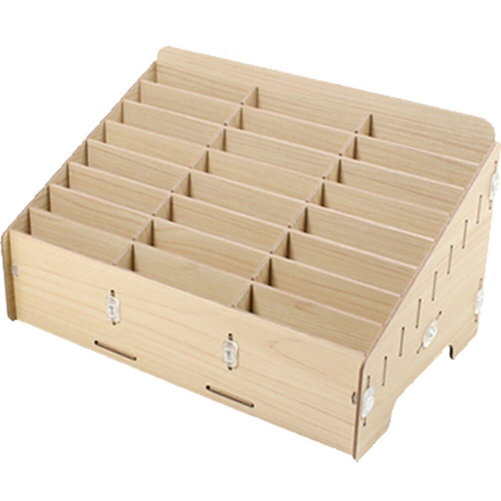【新春セール】収納ボックス 多機能 携帯電話 収納ポケット オフィス用 教室用 木製 便利(24つの仕切り)