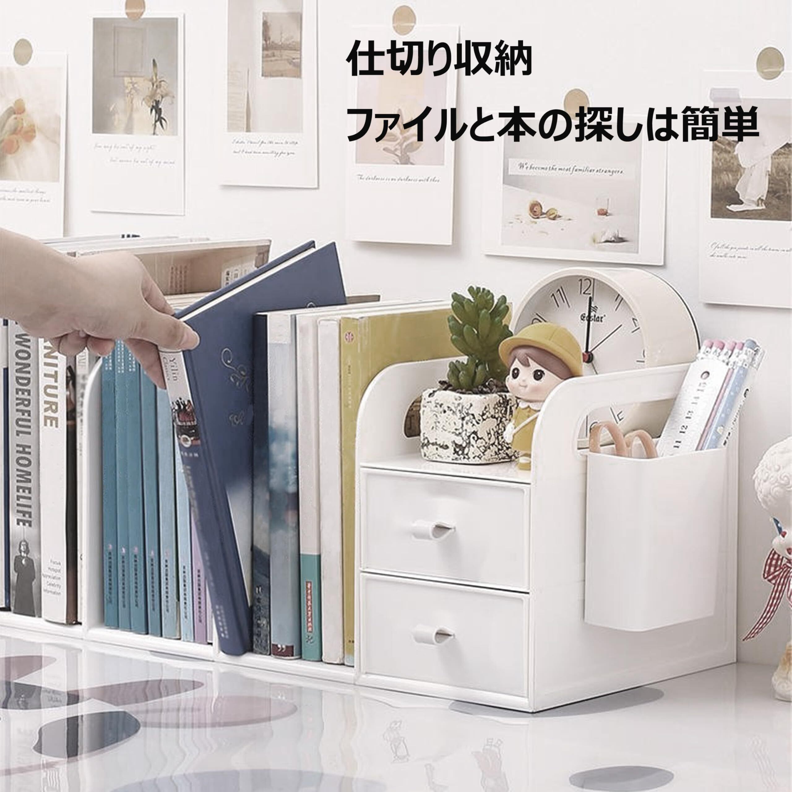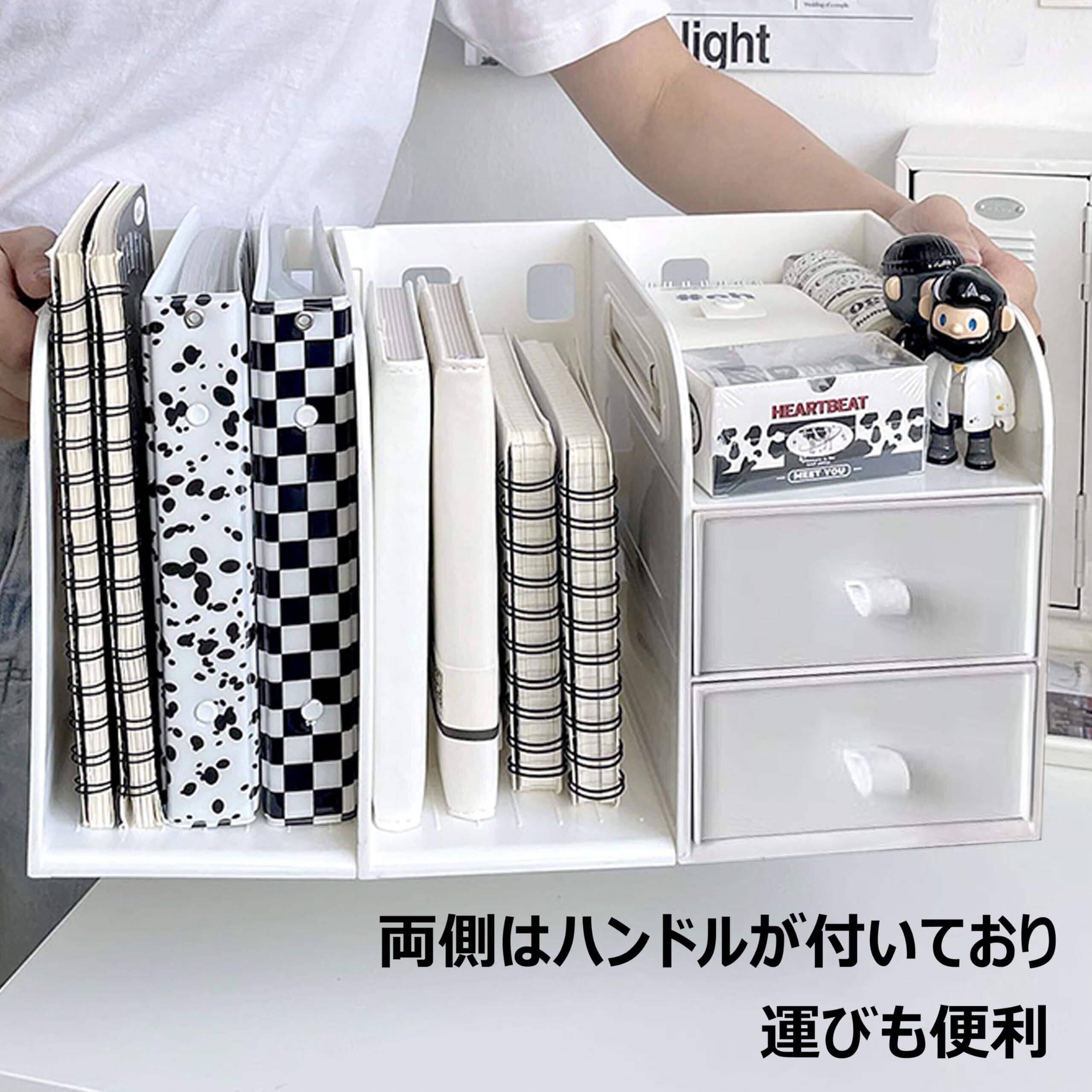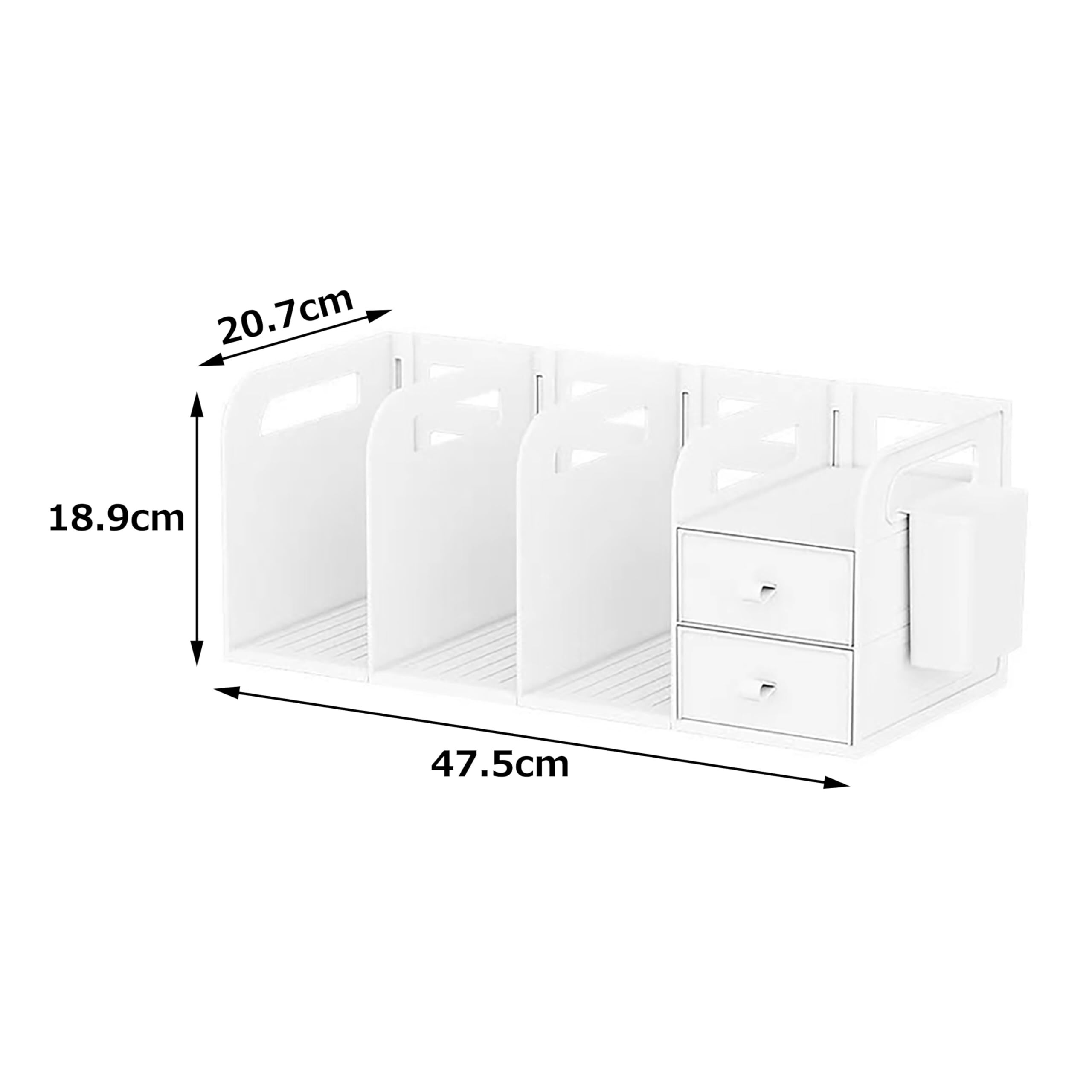 デスク上置き棚 卓上収納ボックス 多機能卓上収納ラック 引き出し付き 大容量 書類収納ボックス 書類棚 本棚 ファイルボックス デスク上置き棚 整理 仕切り A4フォルダー/新聞/雑誌/書類/事務用品/文具用品収納 組立簡単 工具不要 ホワイト (3仕切り)