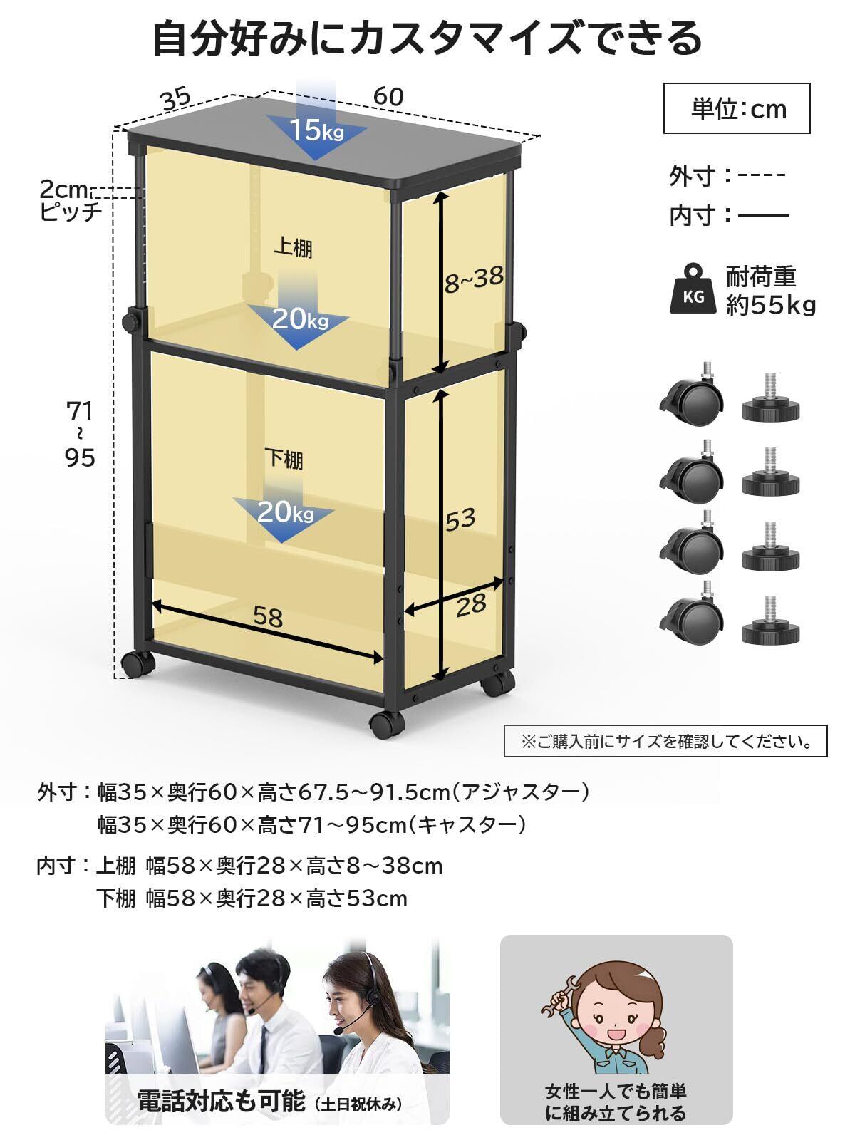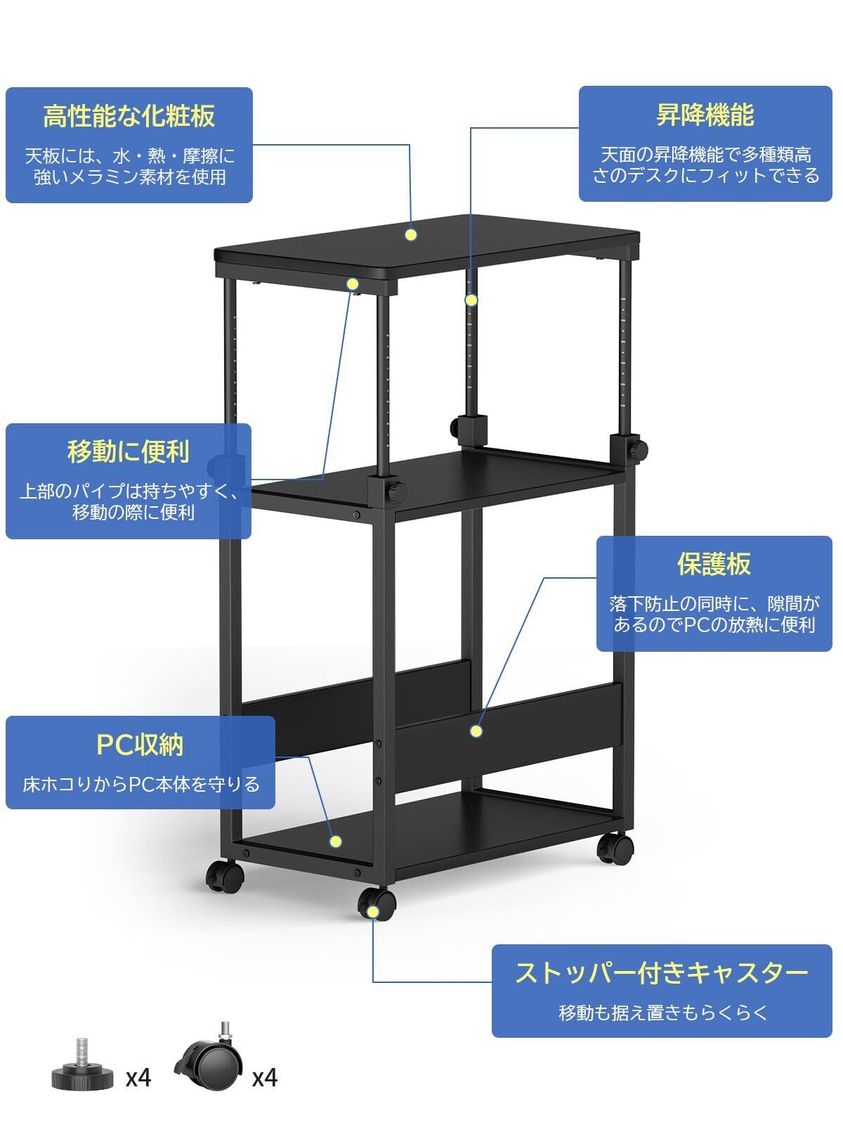 【新春セール】TTWO パソコンワゴン 昇降式 幅35×奥行60×高さ67.5~95cm PCゲーミング cpuスタンド パソコンラック サイドワゴン置き台 複合機 PCラック サイドデスク・L字デスク・プリンター台 ディスプレイワゴン アジャスター・キャスター付き (ブラック)