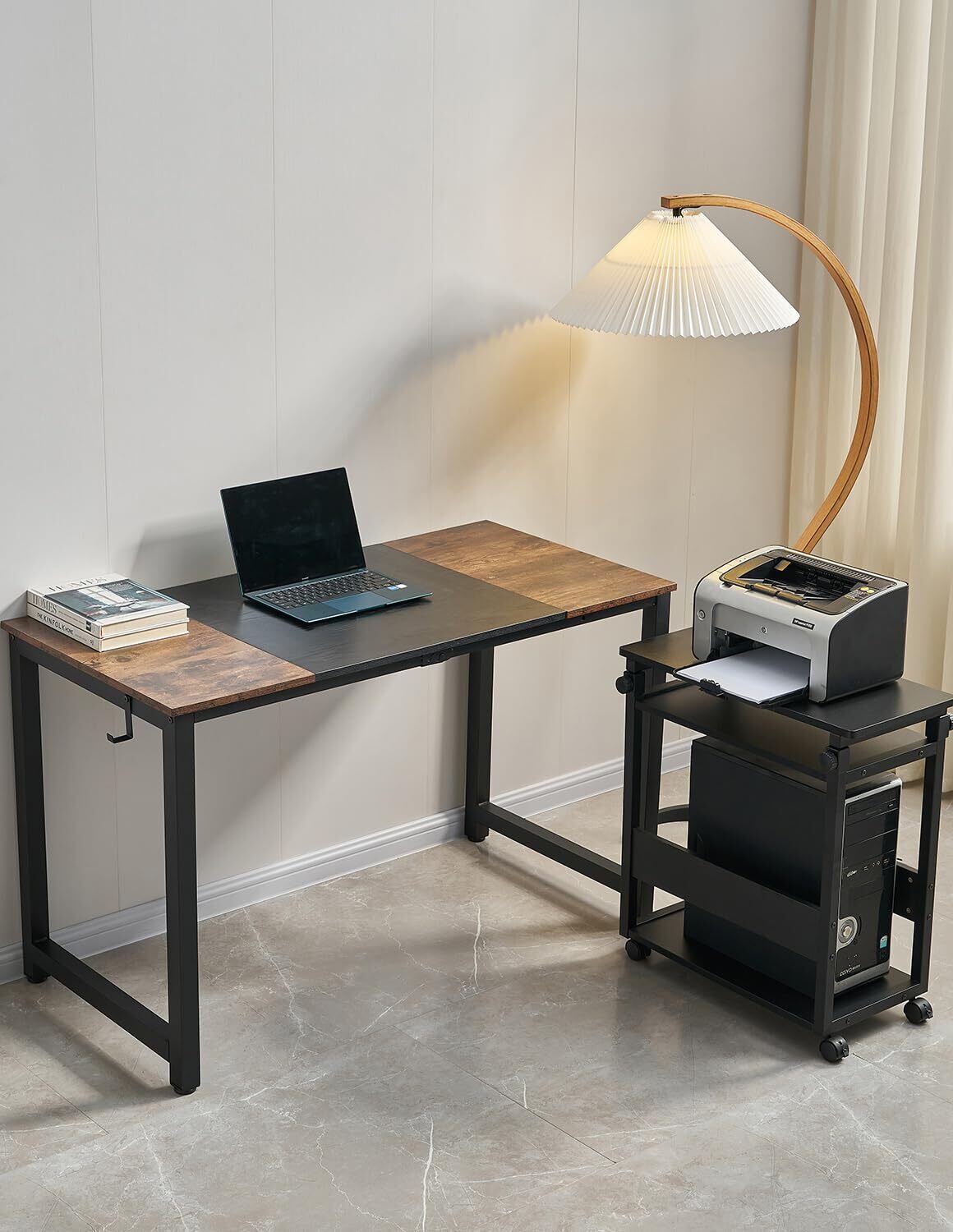 【頑丈な高耐荷重設計・安定感抜群】総耐荷重55kg。 厚みのあるフレームと高品質な棚板を採用し、総耐荷重約55kgを実現。重いプリンターやゲーミングPCを設置しても「ぐらつきにくい」と多くのお客様から高評価をいただいております。表面には傷や汚れに強いメラミン化粧板を使用し、天然木のような高級感のある質感がどんなインテリアにも美しく調和します。