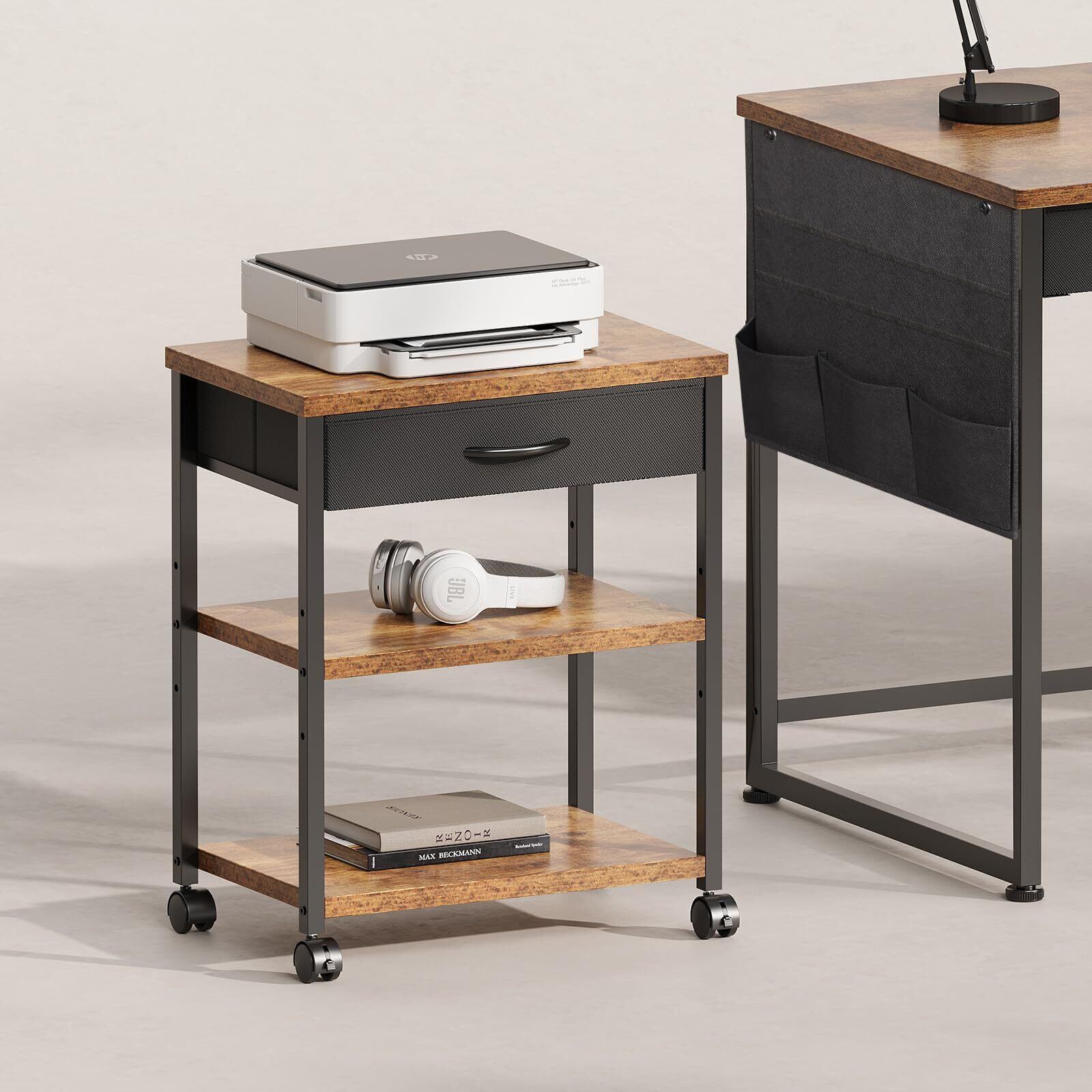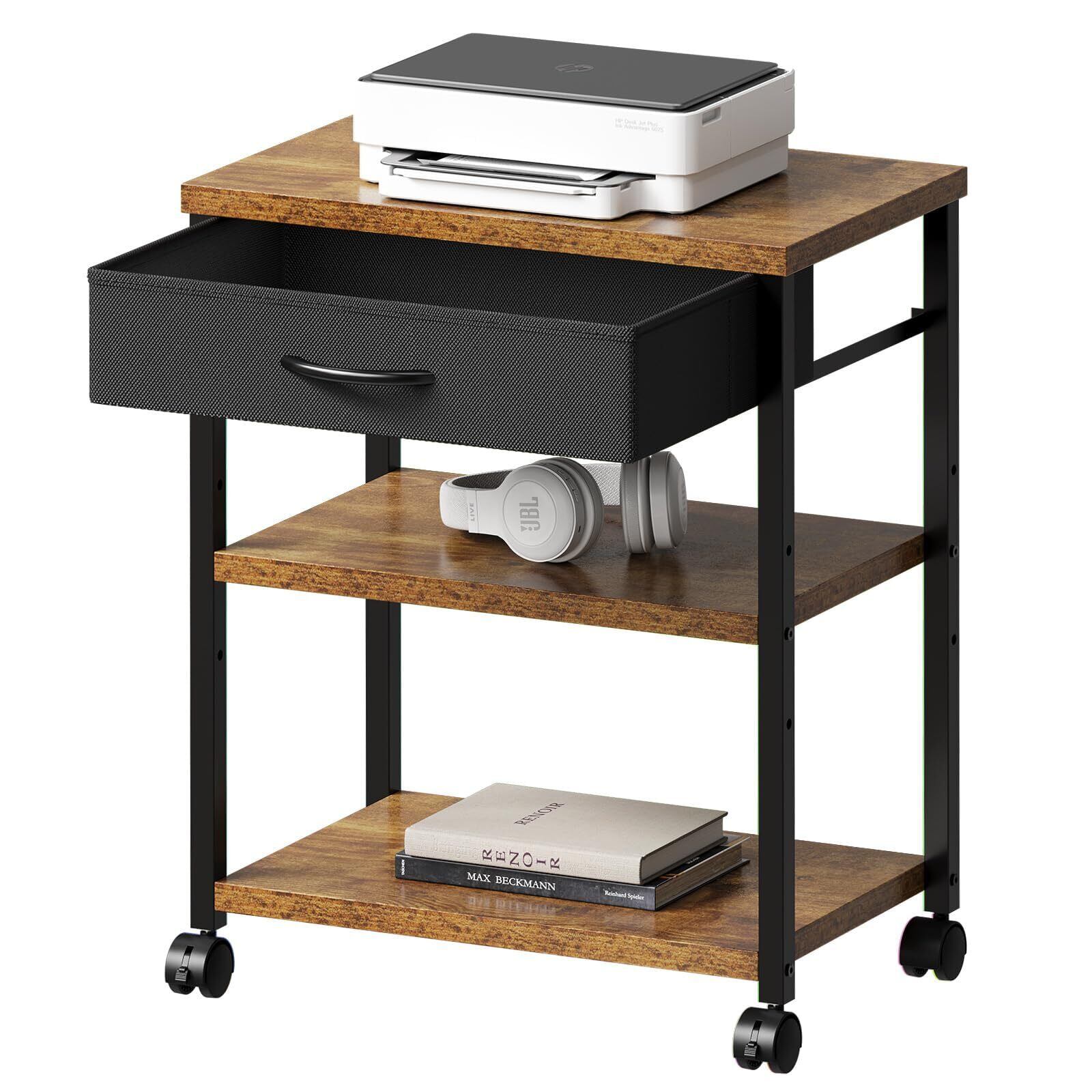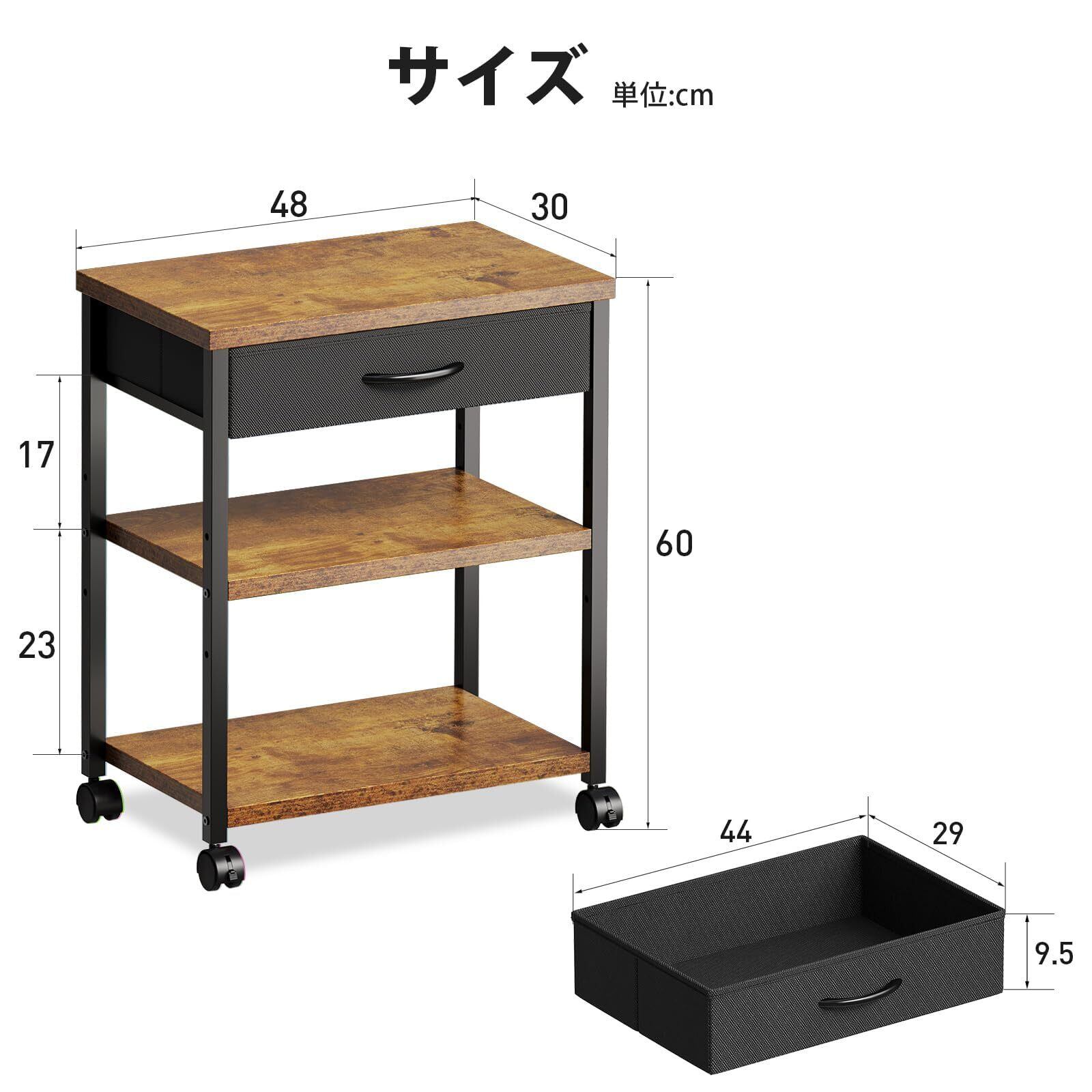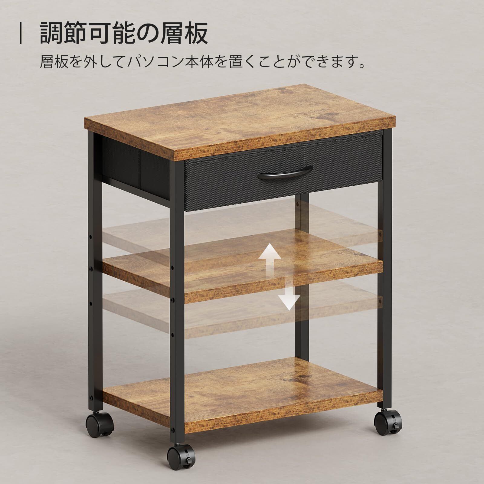 Maihail サイドテーブル ワゴン キャスター付き パソコンラック サイドワゴン プリンター台 板は調節可能 袖机 PC本体収納 幅48x奥行30x高さ60cm ビンテージ