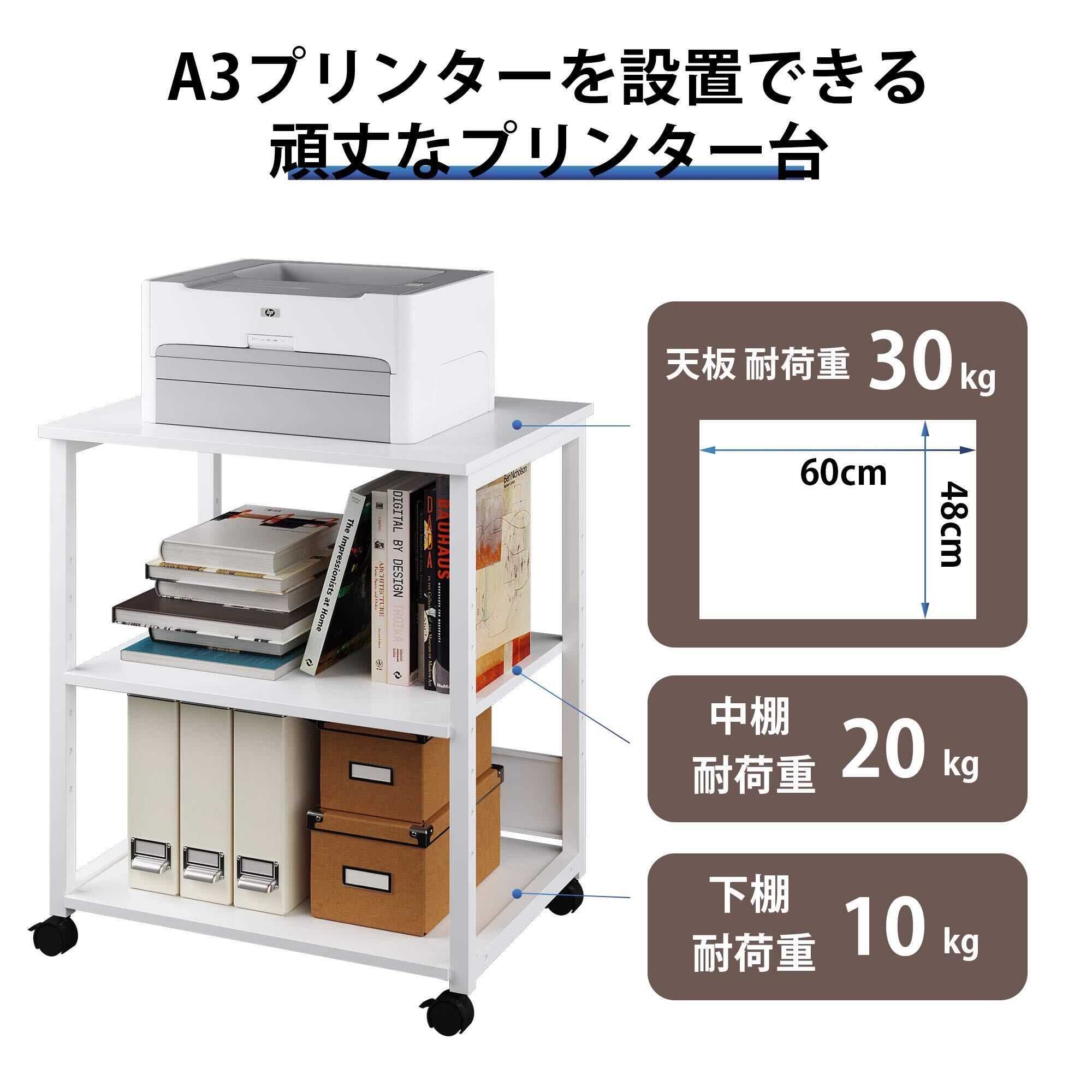 DEVAISE プリンター台 プリンターラック プリンターワゴン キャスター付き 幅60*奥行48*高さ70cm 総耐荷重70kg 複合機使用可 移動便利 ホワイト