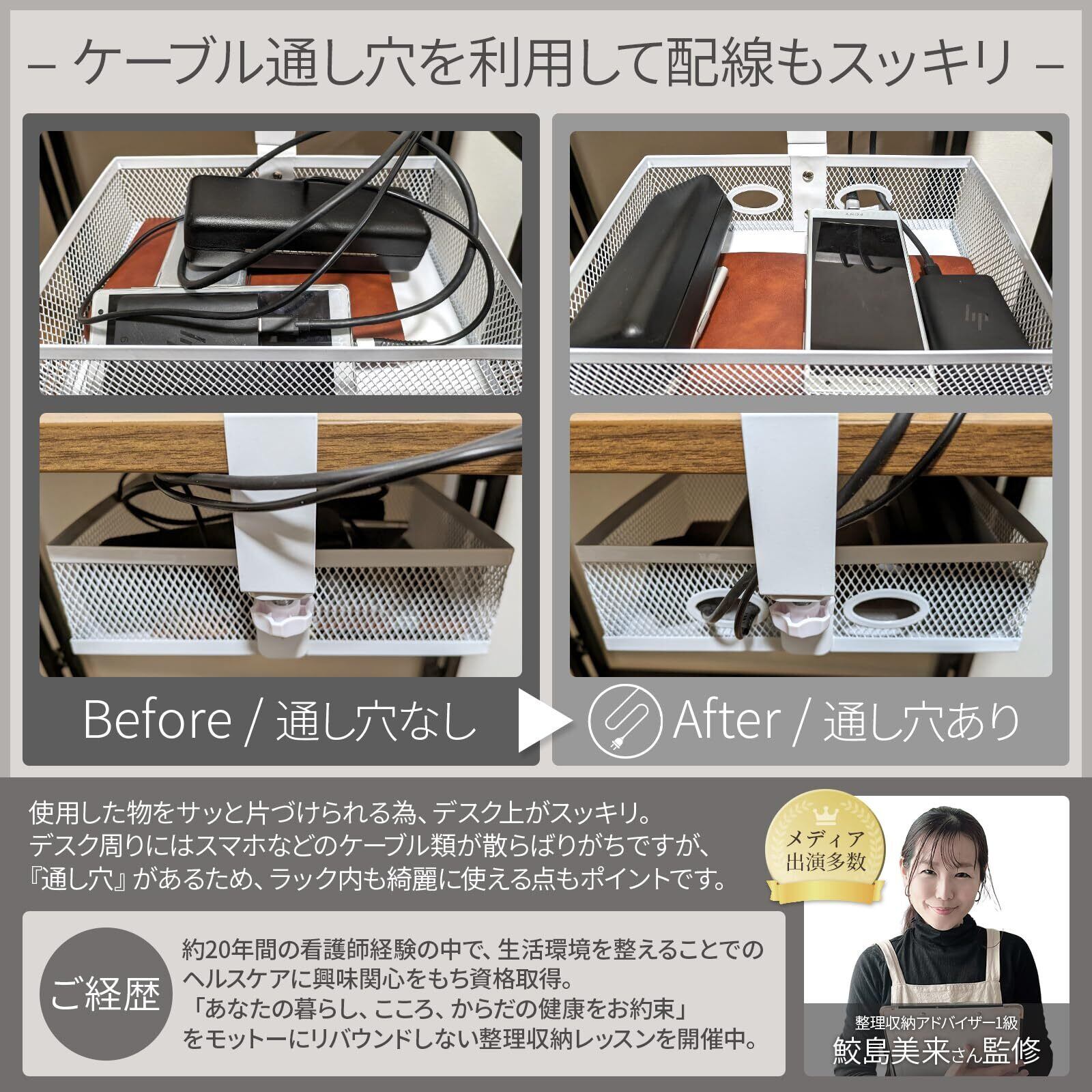 ケーブル通し穴付:ケーブル穴を利用して配線もスッキリ