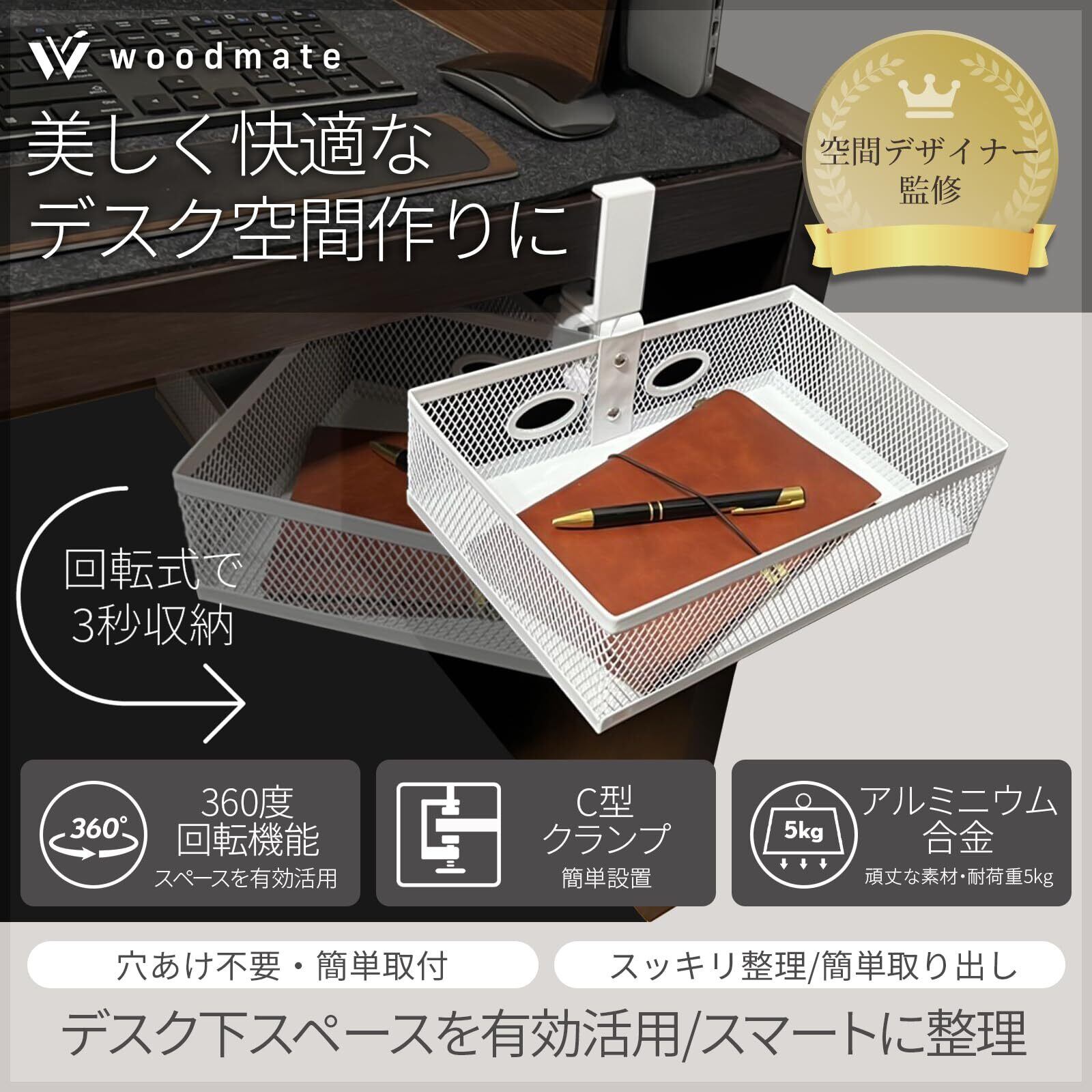 360°回転式引き出し 『空間デザイナー監修』 (ブラック:ノーマル, 1個)