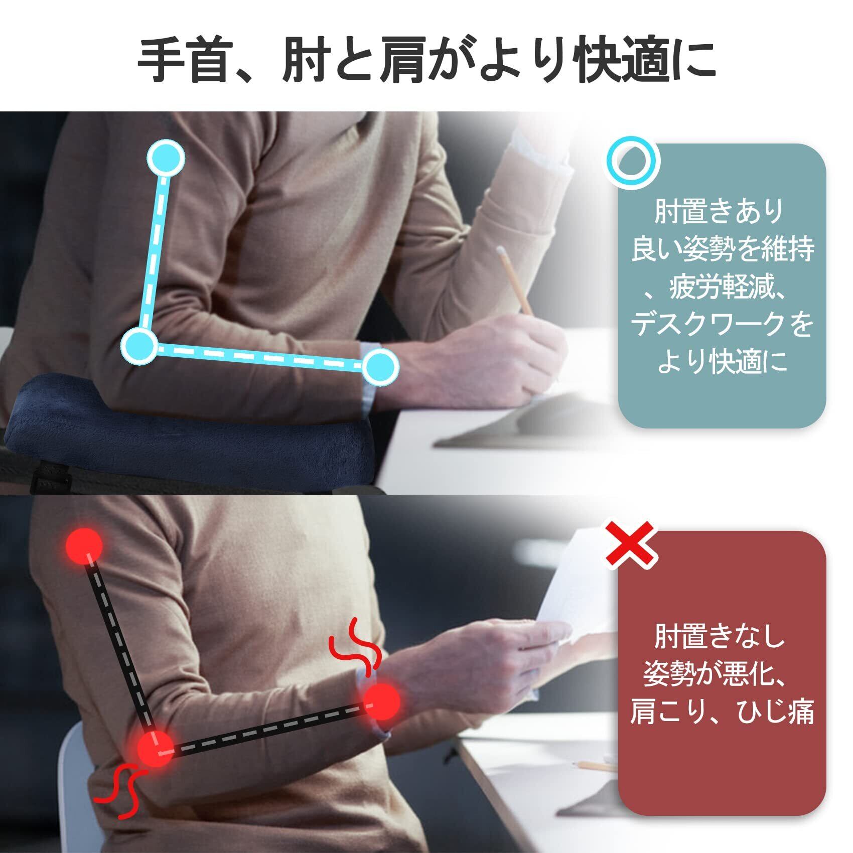 素材へのこだわり:腕置きアームレストクッションは低反発のメモリーフォームをを採用し、腕の形や位置に合わせてフィットするため、体にかかる負担をさらに軽減し、長時間のPC作業をサポートします。カバーの表地は通気性に優れたポリエステルで長時間でも蒸れにくく、使い心地が良いです。
