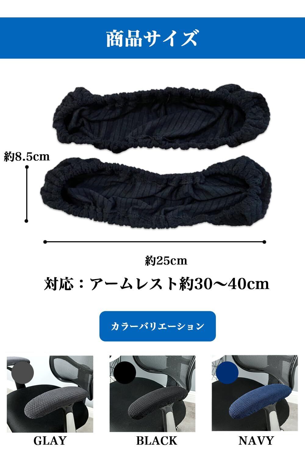 【 様々なシーンで活躍! 】 オフィスの回転椅子、自宅、ゲーミングチェア、コンピュータチェア、ワークチェアなどの様々な椅子にお使いいただけます。ブラック、グレー、ネイビーの3色をご用意しております。どのカラーも合わせやすく使いやすいのでお好みのカラーをお選びください。カバーを変えることで気分もまたリフレッシュでき、仕事や趣味も捗るでしょう 【 商品詳細 】 ●セット内容:左右2個セット●カラー:3色●サイズ:約30cm〜40cmに対応●素材:ポリエステル製