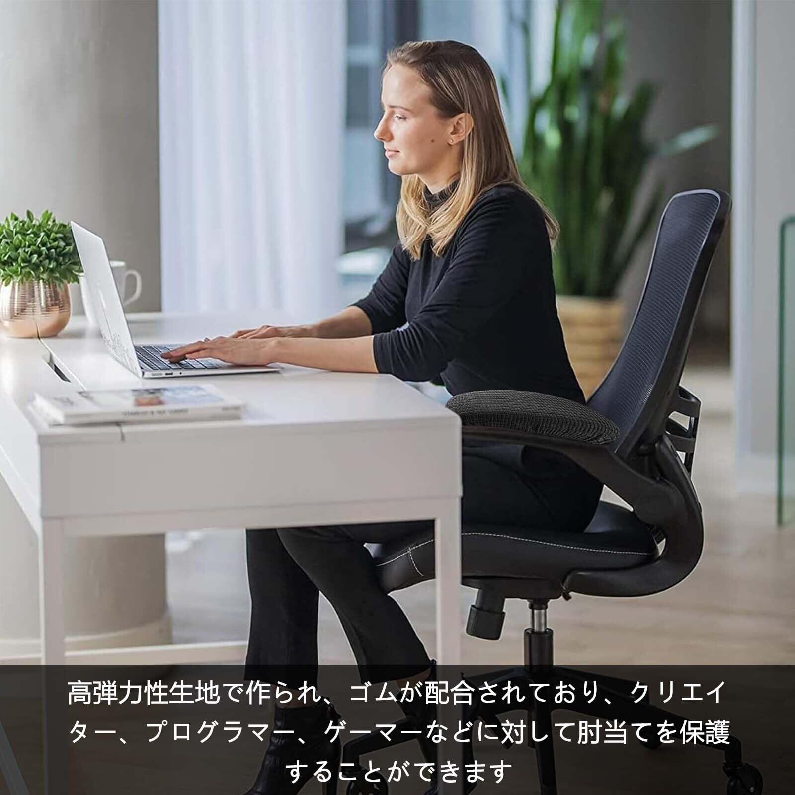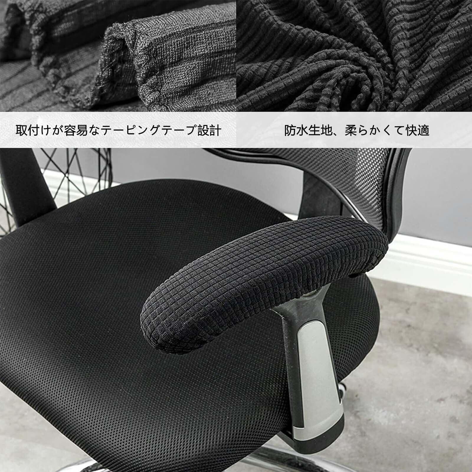 アームレストカバー 肘かけカバー 1ペア 椅子 肘置きカバー 取り付け簡単 伸縮性 腕保護 肘掛けカバー 夏は汗を吸収します 洗濯簡単 イス/オフィスチェア/ゲーミングチェア用 オールシーズン対応(ブラック)