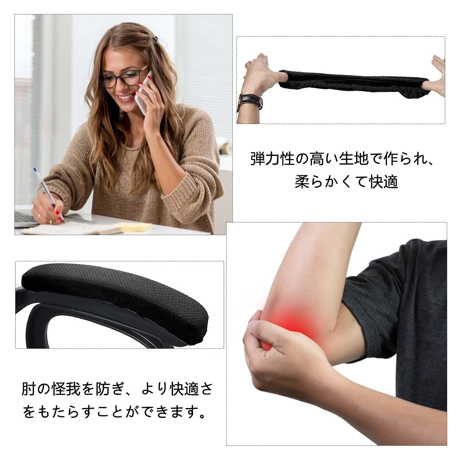 【新春セール】アームレストカバー 肘かけカバー 1ペア 椅子 肘置きカバー 取り付け簡単 伸縮性 腕保護 肘掛けカバー 夏は汗を吸収します 洗濯簡単 イス/オフィスチェア/ゲーミングチェア用 オールシーズン対応(ブラック)