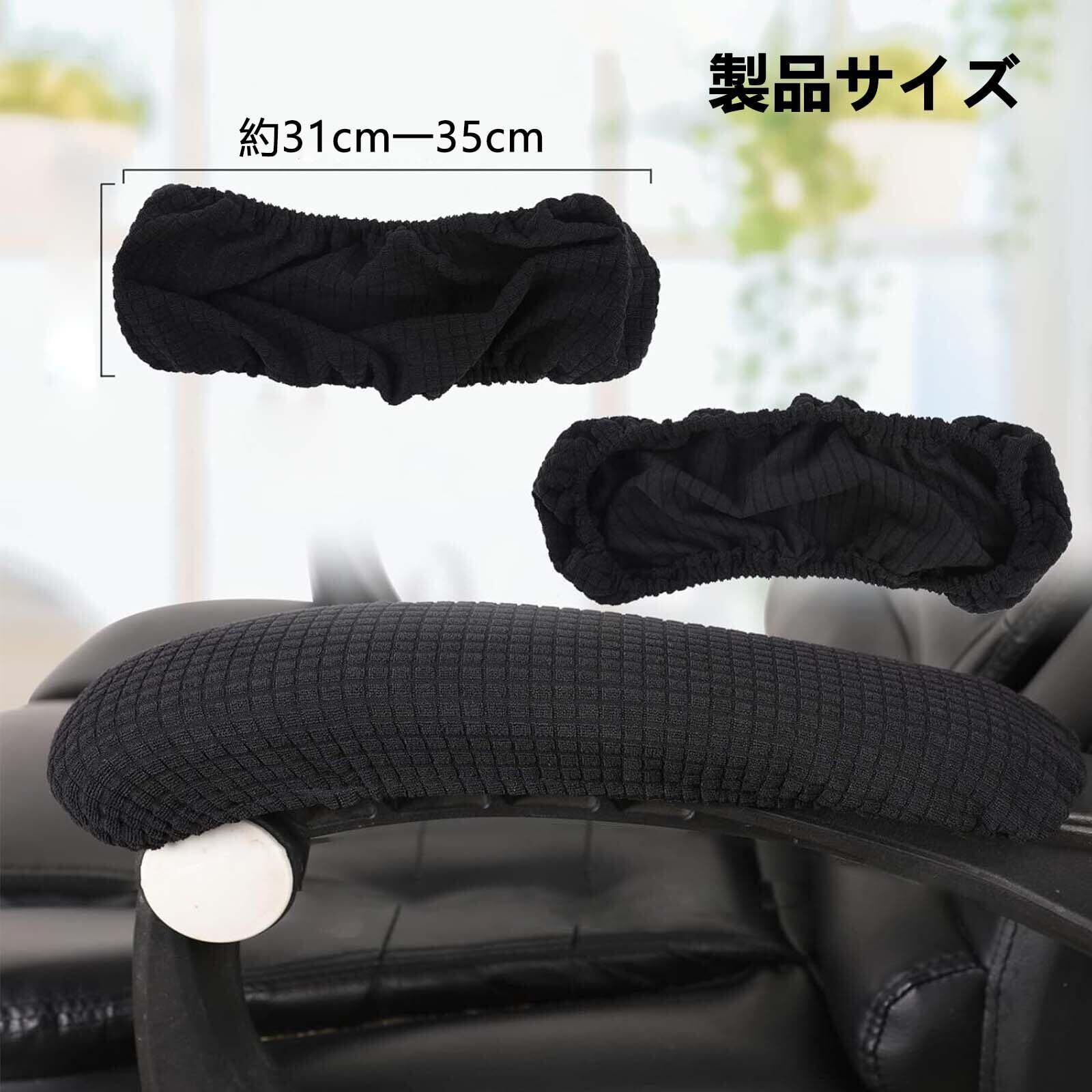 【チェア肘掛けカバー 仕様】1ペア椅子アームレスカバー、カラー:ブラック、サイズ:約31cm-35cm。