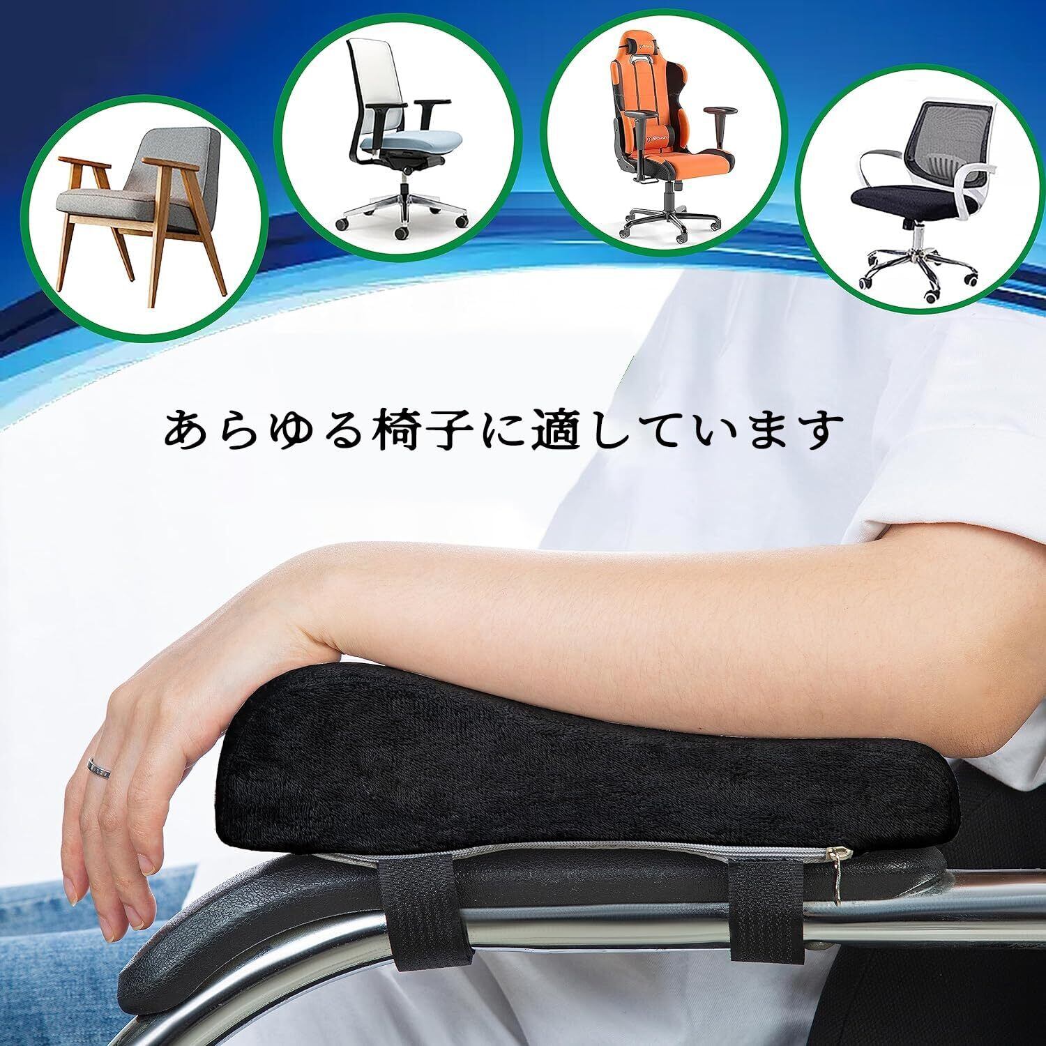 【幅広い用途】:肘掛けクッションは汎用タイプとなっているので、オフィスチェア、ゲーミングチェア、自宅のアームチェア、ガーデンチェアや、車、車椅子、座椅子、新幹線席、飛行機席など様々なチェアに取り付けで使用可能です。自分用はもちろん、家族・友人・同僚など長時間のコンピューター作業をする方へのプレゼントとしては最適です。