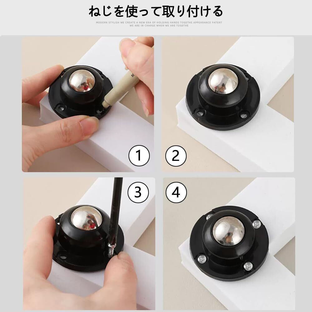 キャスター 粘着テープ式キャスター ボール車輪 家具 静音 移動便利グッズ 簡単に取り付ける 家電 スムーズに360度回転 ねじ 台車 車輪ボール キャスターホイール 回転ホイール 黑色 8個セット
