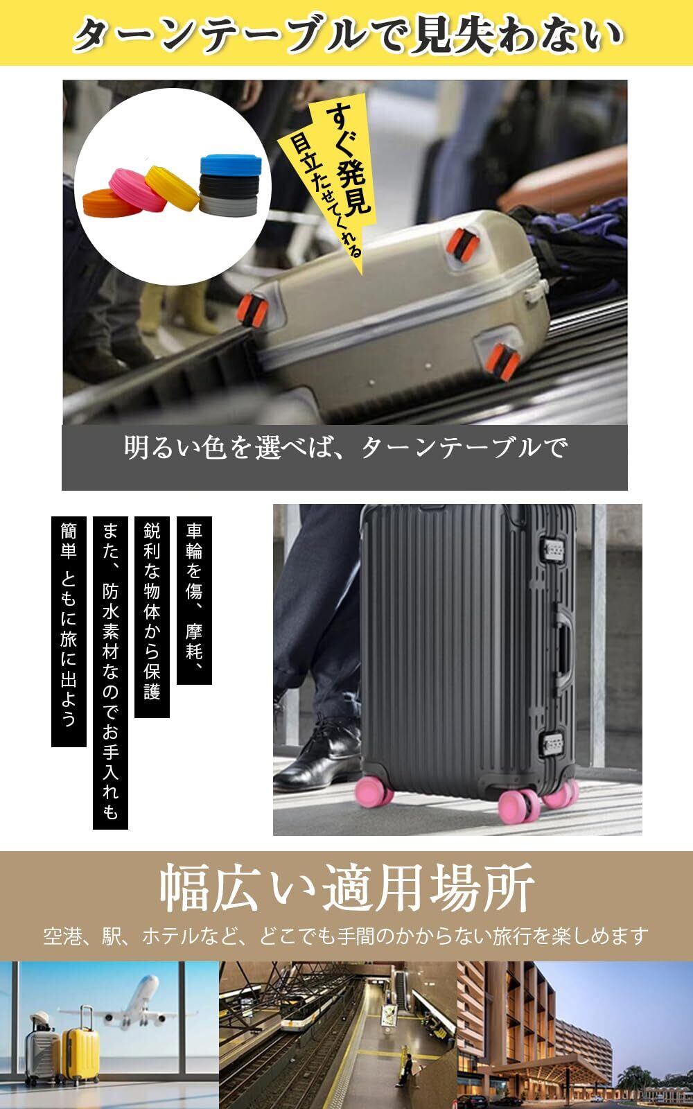 【実用性&個性的】 車輪を傷、摩耗、鋭利な物体から保護します。また防水素材なのでお手入れも簡単、空港、駅、ホテルなど、どこでも手間のかからない旅行をたのしめます.様々な色から選択可能、ターンテープで自分のキャリーバッグをすぐ発見できます、旅行中に独自の個性を表現することができます。