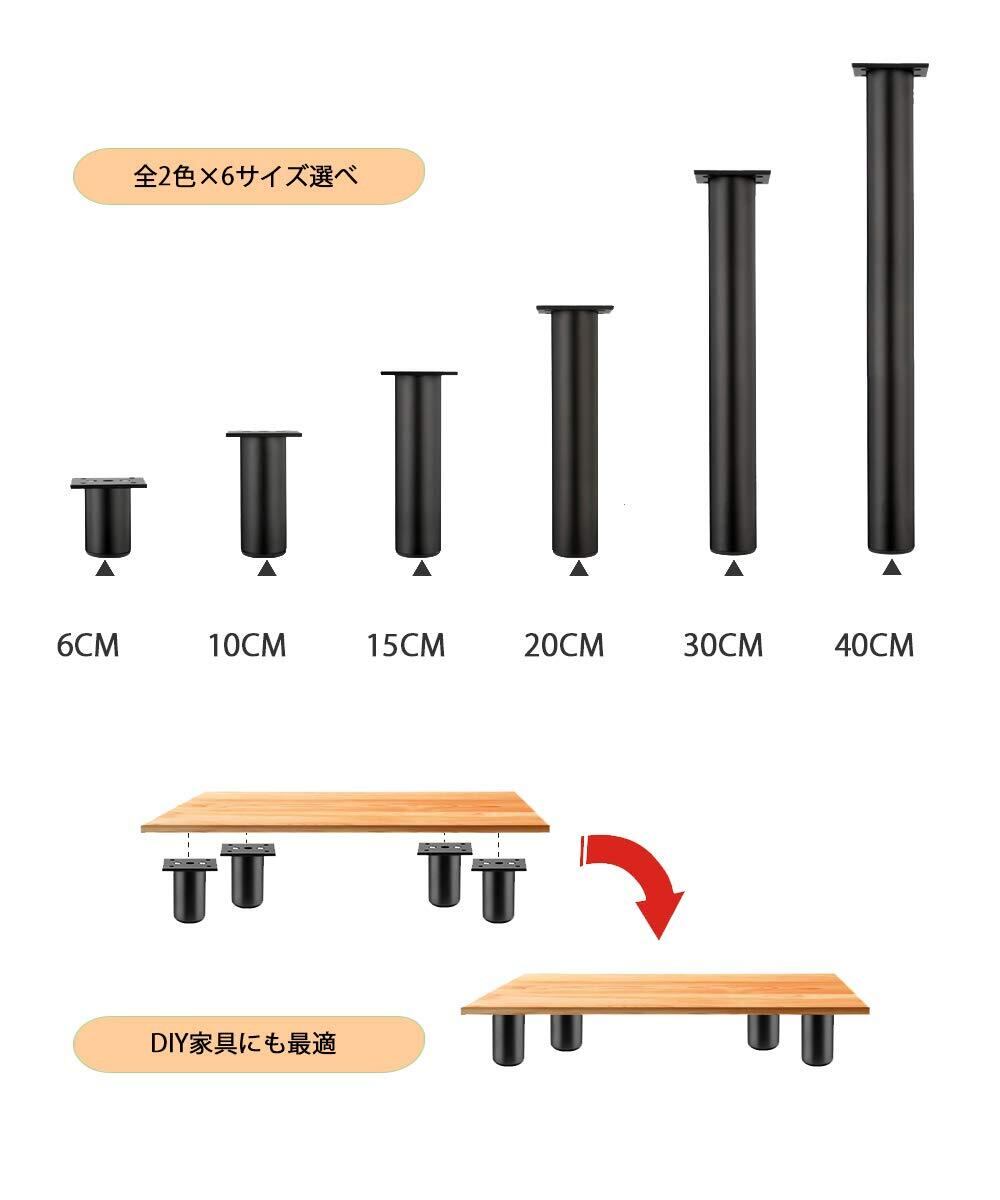 【在庫セール】PanPan Amore 安定 家具脚 4点入り 高さ 調節可能 耐久性 すべり止め 脚 取り替え 交換 ソファー テーブル ベッドφ38mm(10cm/ブラック)