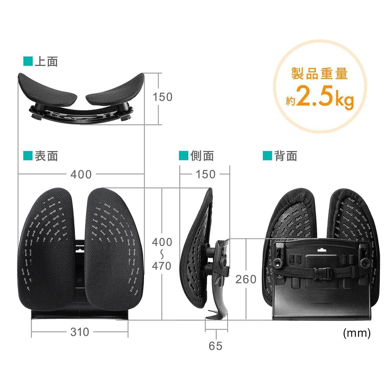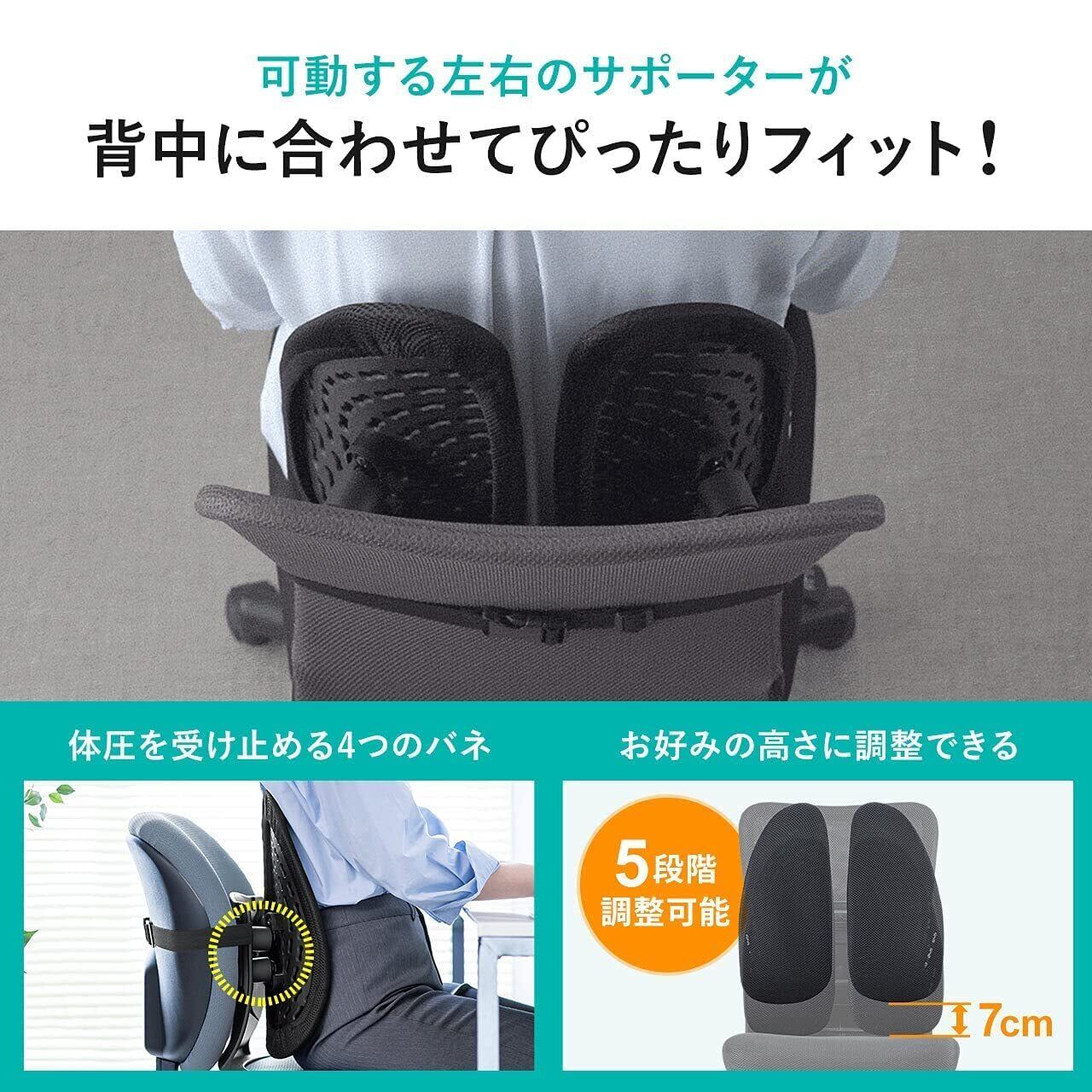 【在庫セール】サンワダイレクト ランバーサポート 背もたれ 椅子 車 メッシュ エルゴノミクス形状 ブラック 150-SNCCS2