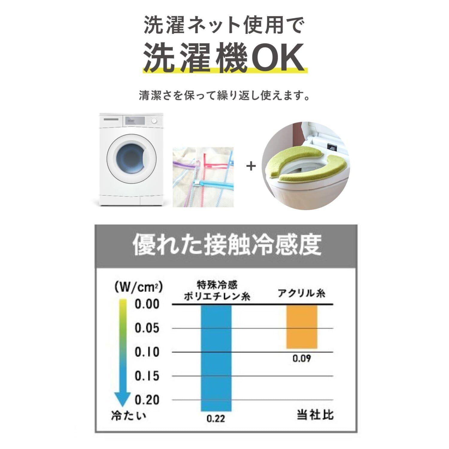 暖房便座の電源オフでもふかふかのクッションでひやっとせず暖かい。接触冷感生地で蒸れずに気持ちよくさらりと快適な座り心地。※厚みがある商品のため、フタがしっかり閉まらなくなる場合があります。そのため便フタに断熱材が含まれている機種や、除菌効果のある機種のご使用は効果を妨げる恐れがありますのでご注意ください。※クッション性がある商品の特性で一部の着座センサー(タテ5.5cm×ヨコ8cm)が誤作動を起こす場合があります。誤作動を起こした場合は、必ず便座の電源をオフにしてご使用ください。