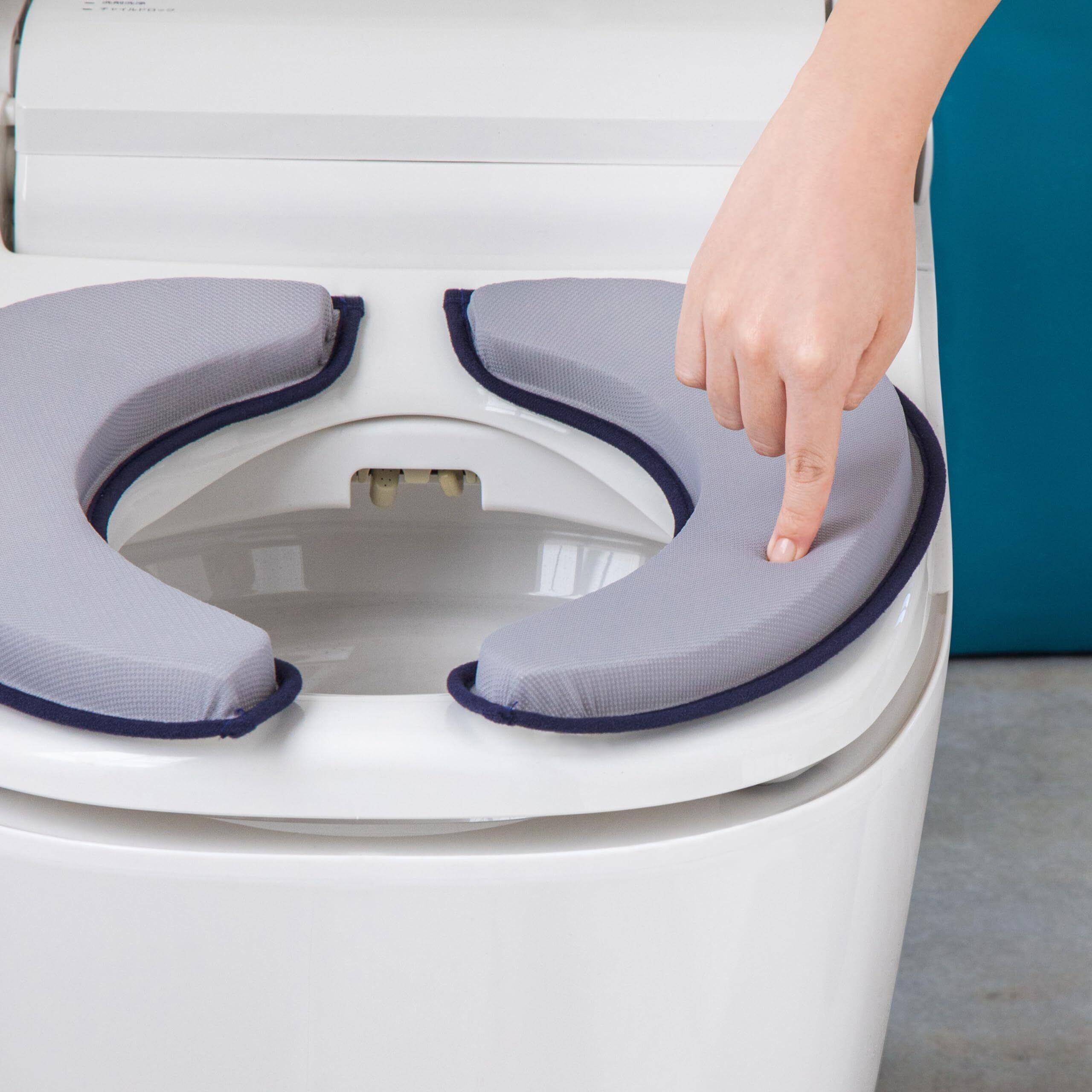 【取り付け・お手入れ簡単】便座に置くだけでピタッと吸着。ズレません。着脱が簡単。どのタイプの便座にも使用できます。(洗浄暖房型・O型・U型)洗濯機OK!繰り返し洗っても型崩れしにくい。吸着面にはアンモニア消臭効果があり、お手入れ簡単で清潔。