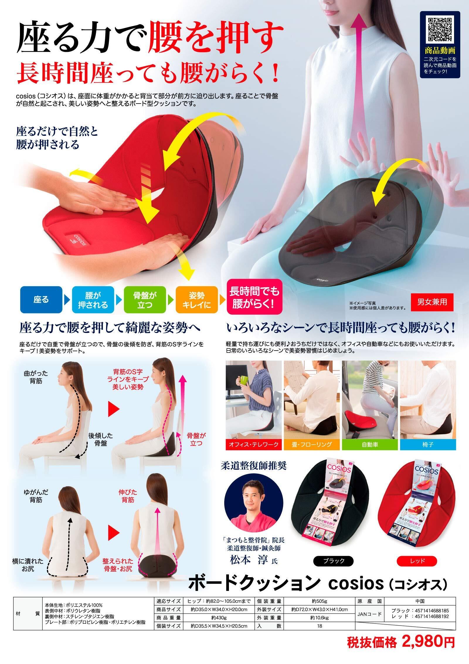 【数量限定】ボードクッション cosios(コシオス) ブラック クッション お財布のプレゼント付き 背筋ピン 座り心地 良い 北海道・沖縄・離島は出荷不可