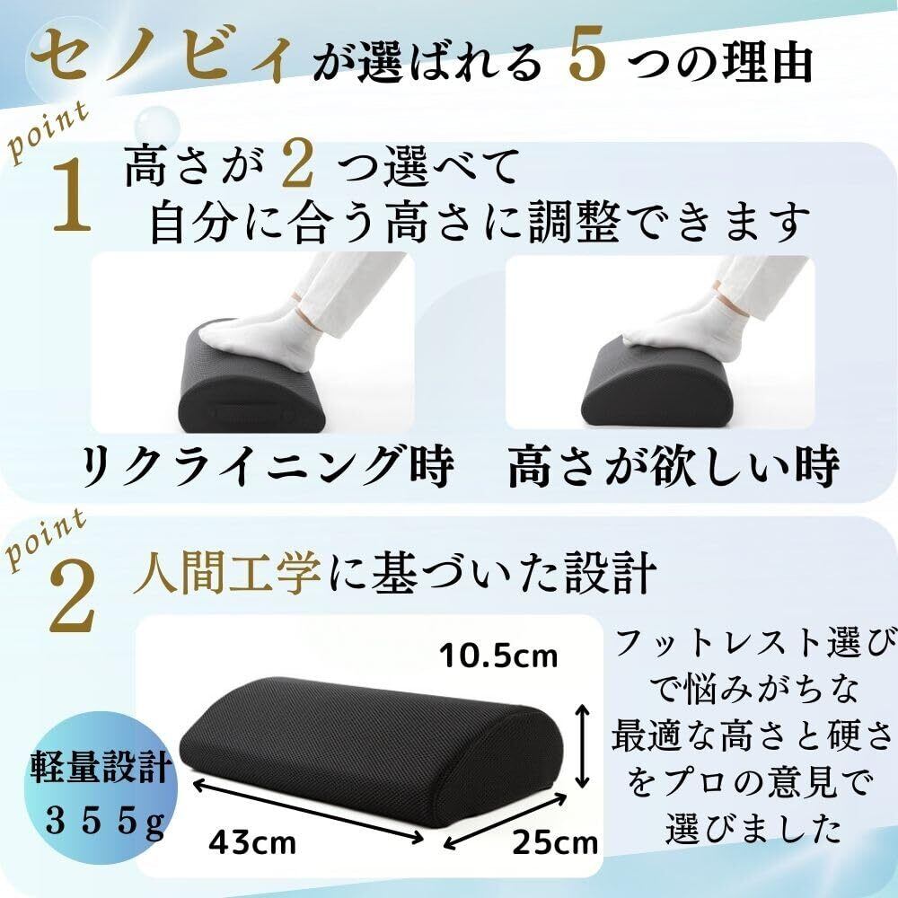 【数量限定】セノビィ フットレスト 足置き デスク下 整体師監修 テレワーク用 足台 足枕 机の下 足置き台 (ブラック)