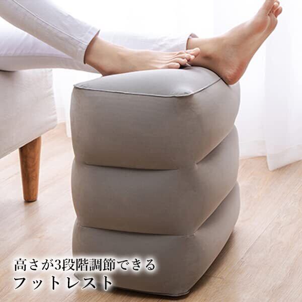 【在庫処分】フットレスト 空気 三段階 エアータイプ オットマン クッション 足置き 足乗せ 足枕 旅行 ダークグレー