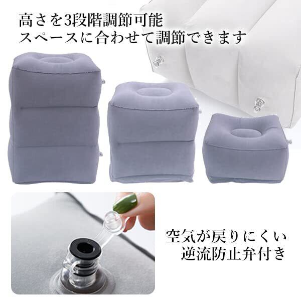 フットレスト 空気 三段階 エアータイプ オットマン クッション 足置き 足乗せ 足枕 旅行 ダークグレー