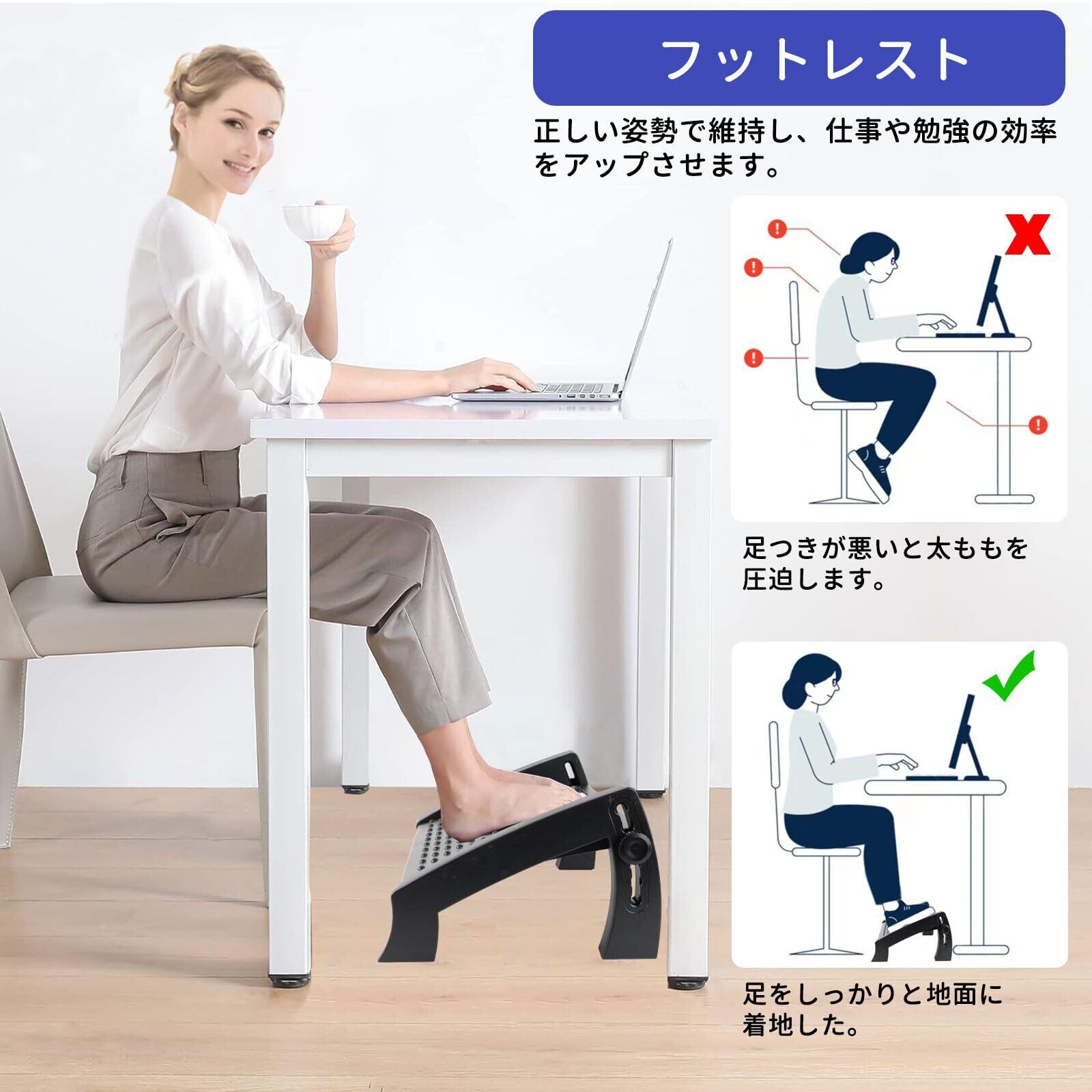 ✨【よい姿勢をキープ】フットレストは足を支える役割を果たすだけでなく、足を乗せたときに良い姿勢を維持できます。長い1日を終えた後に、ご自宅でフットレストを使うこともできます。