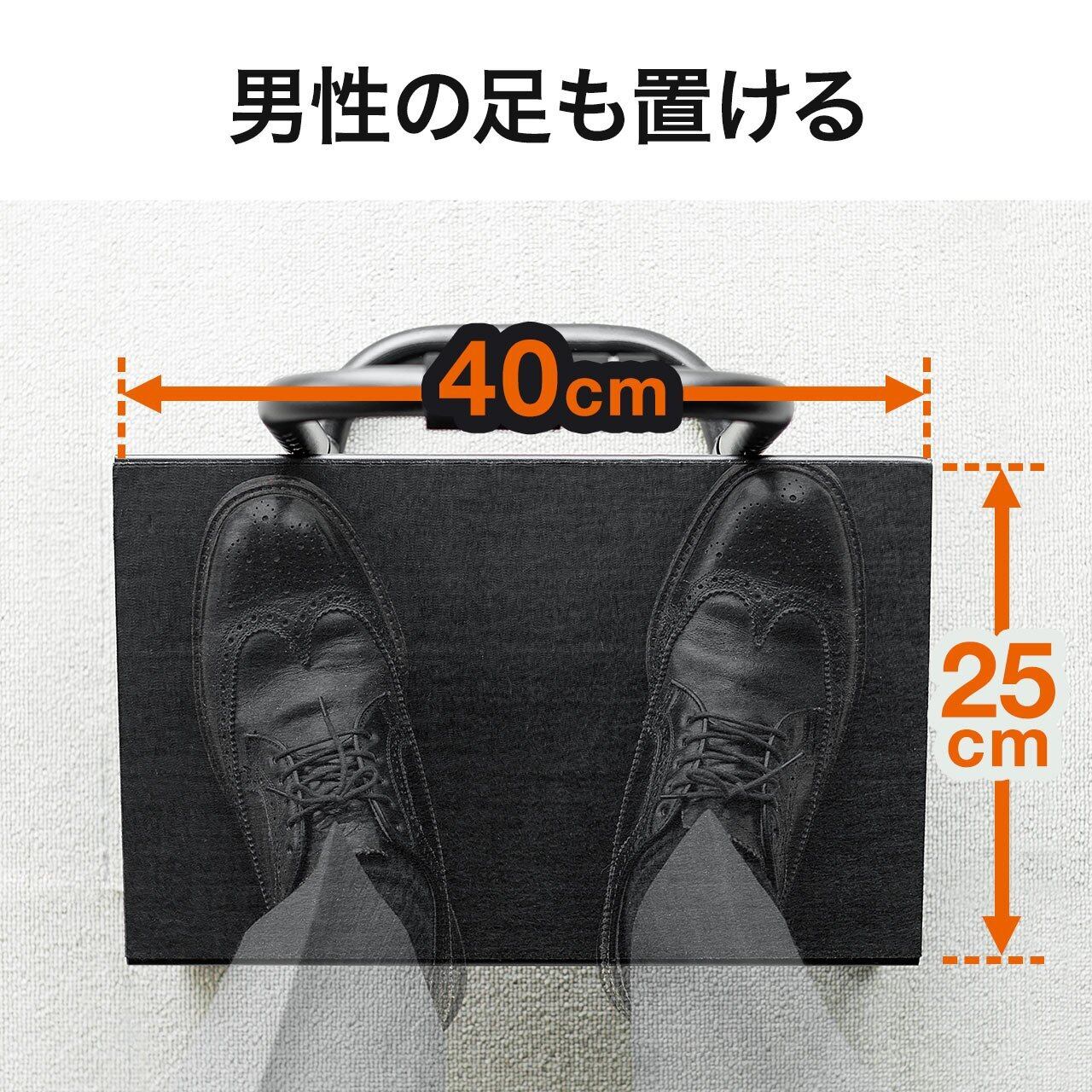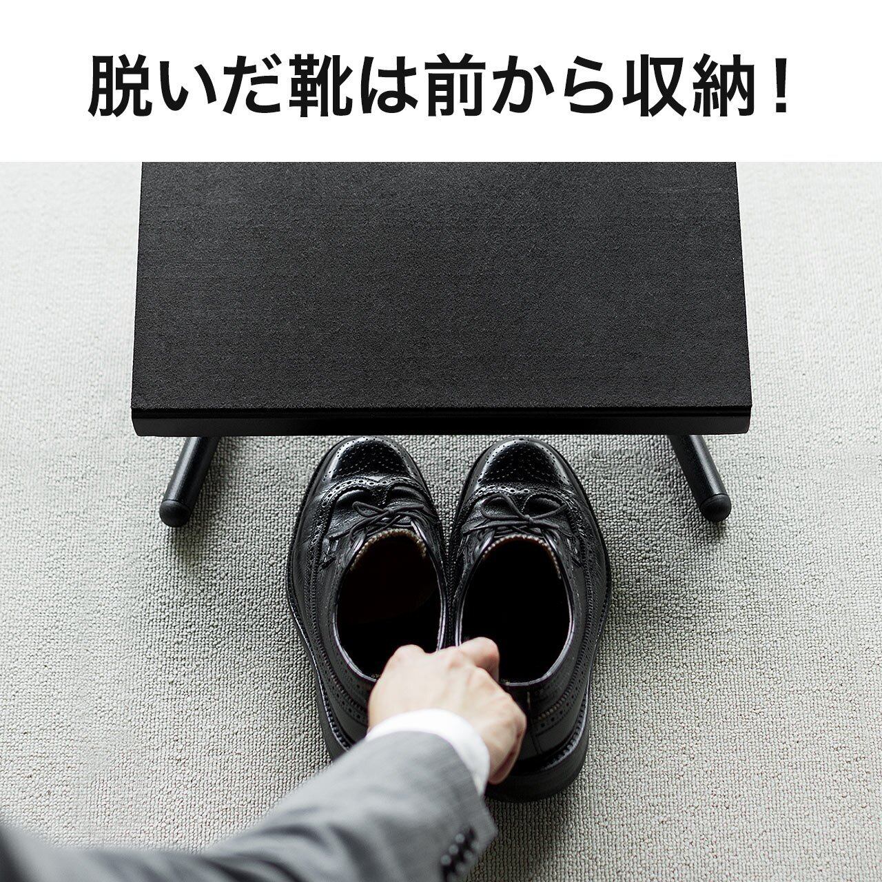 引っ掛けることで簡単に変更でき、台下に脱いだ靴を収納することが出来ます。(※台の高さにより、入る靴のサイズが異なります)