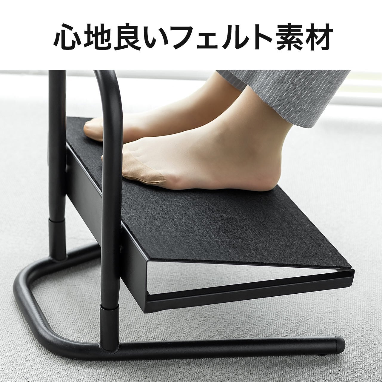足を置く面にはフェルトが貼られているので、靴を脱いで足を置くこともできます。