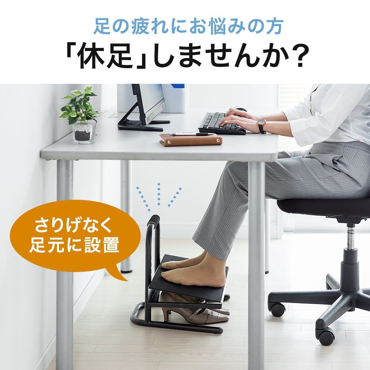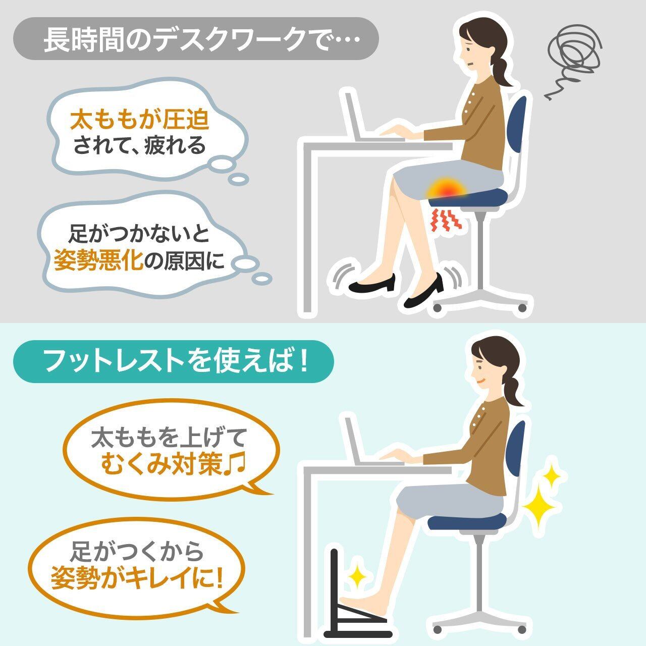 足を快適にサポートする フットレスト です。
