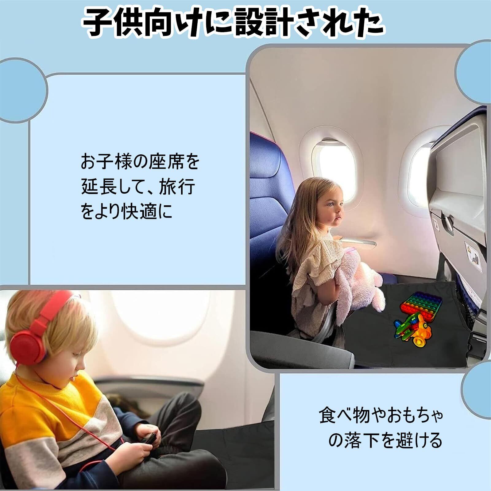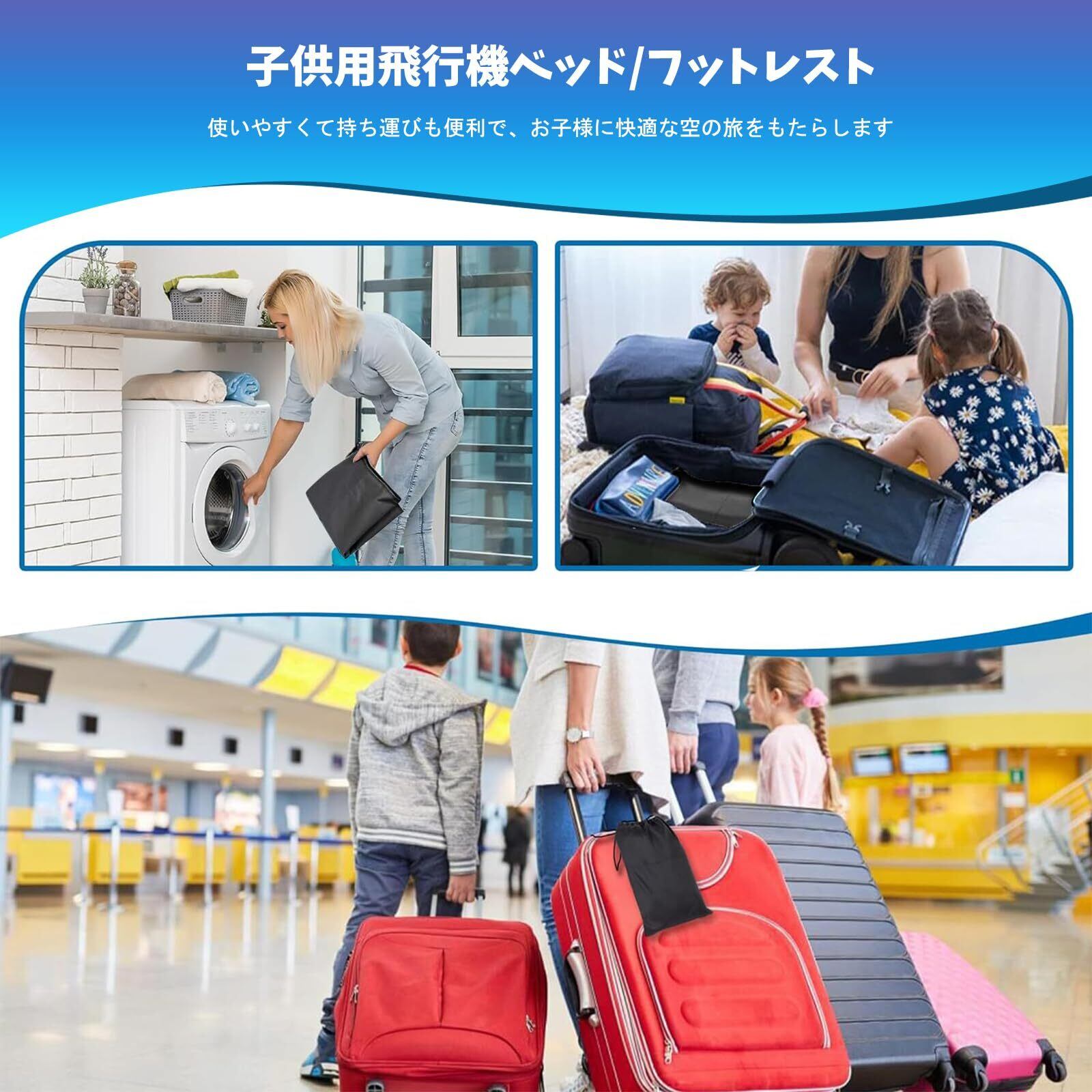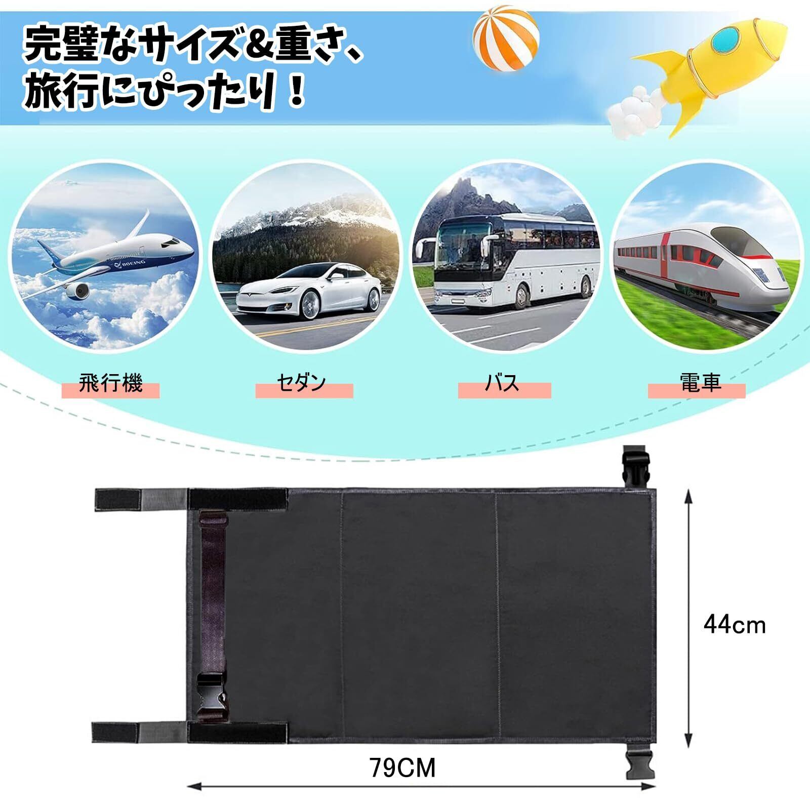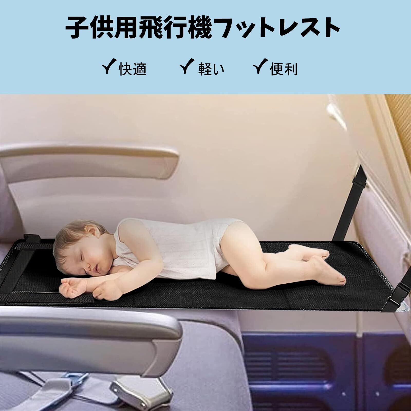 幼児用飛行機フットレスト 飛行機シート 子供用 エクステンダーマット 軽量 通気性 快適ハンモック 水洗可能 ベビー用 旅行 飛行機のフライト/高速鉄道の座席/車/バス/電車 収納袋付き (黒)