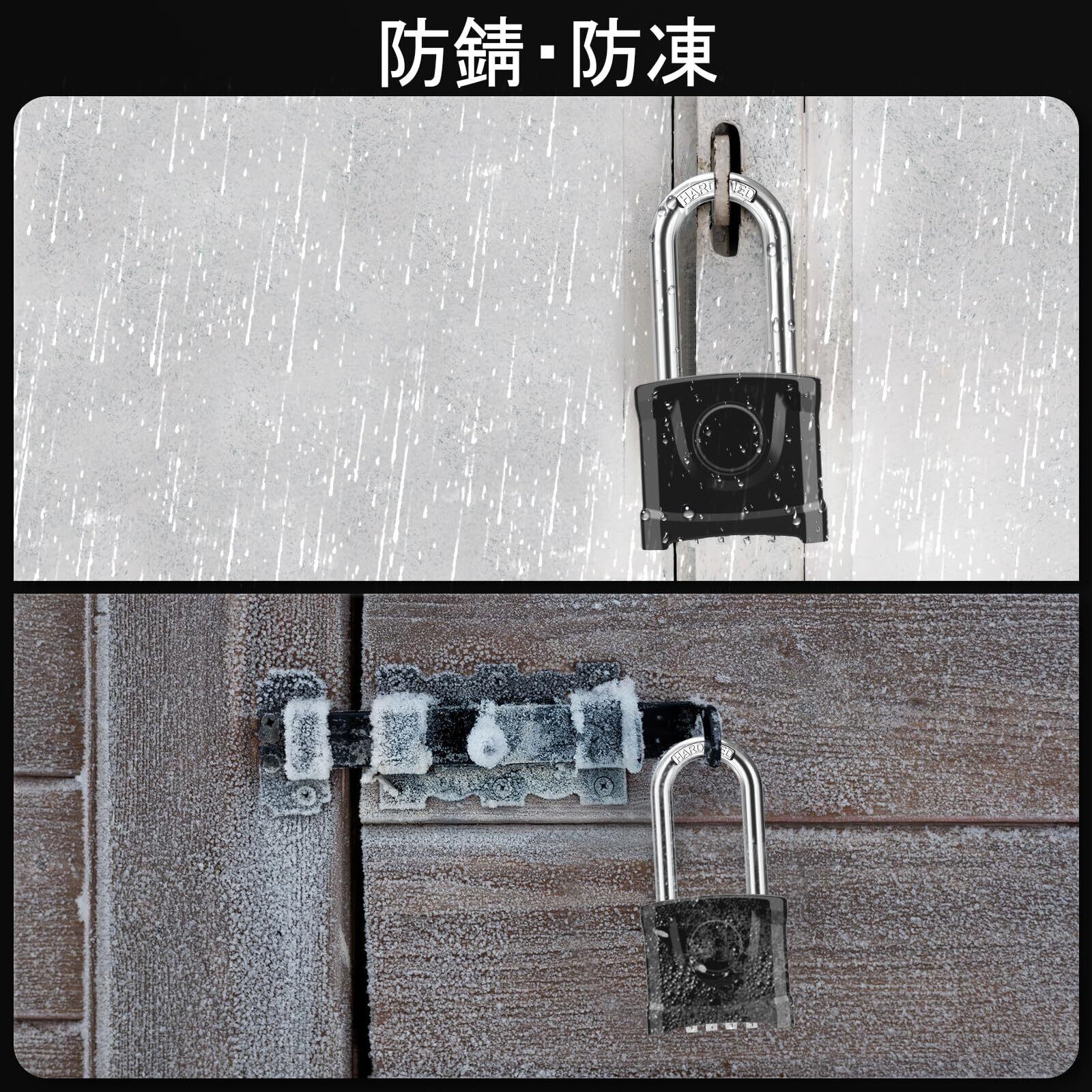 【高品質・耐候性】Diyife防水コンビネーション南京錠は高強度亜鉛合金製で、錆びにくく、耐候性に優れています。南京錠は、強度と信頼性のために亜鉛ボディと強化ボディバンパーで構成され、耐切断性のために硬化304ステンレス鋼シャックルを使用しています。塩水噴霧テストは 180 時間以上実施され、過酷な条件に対する耐性が証明されています
