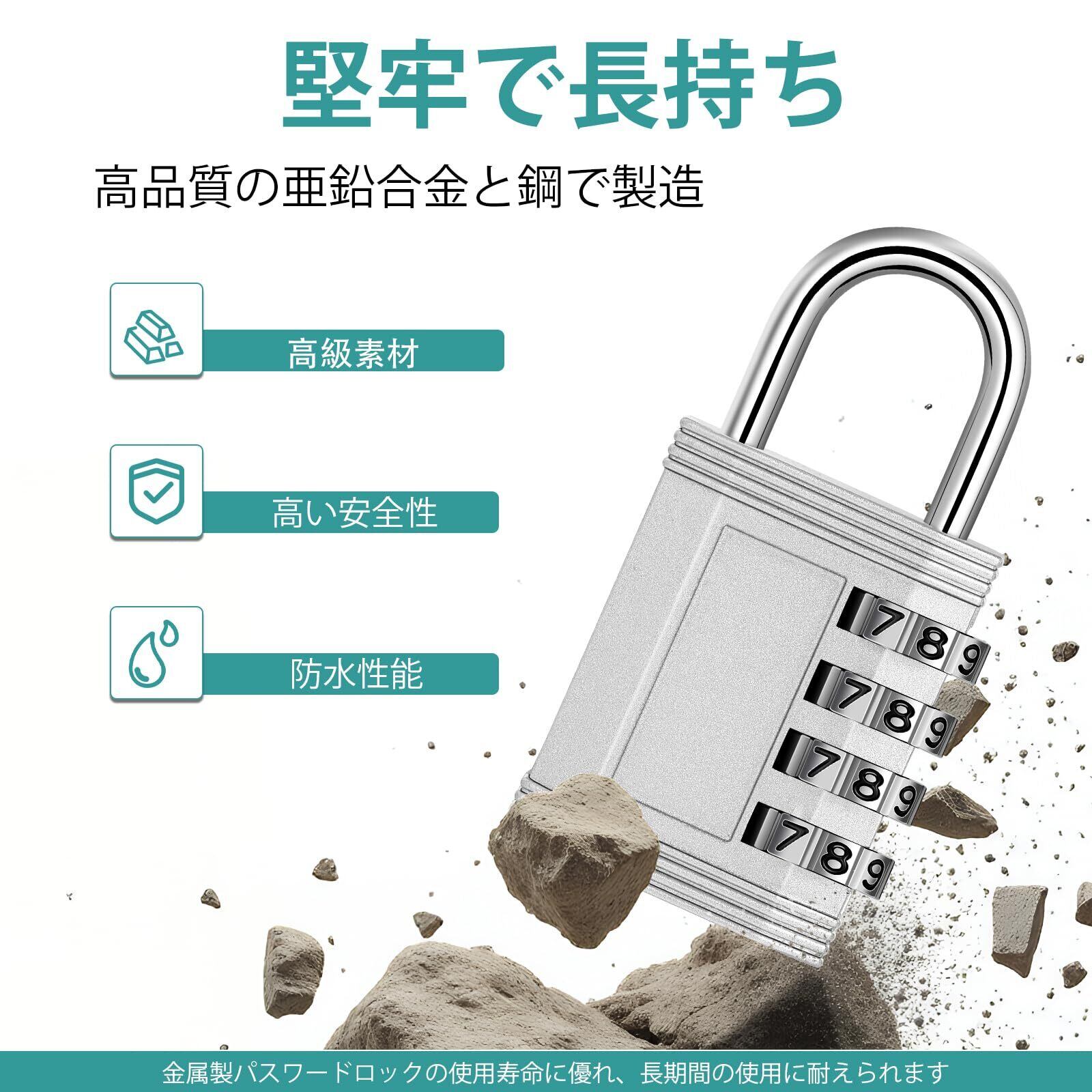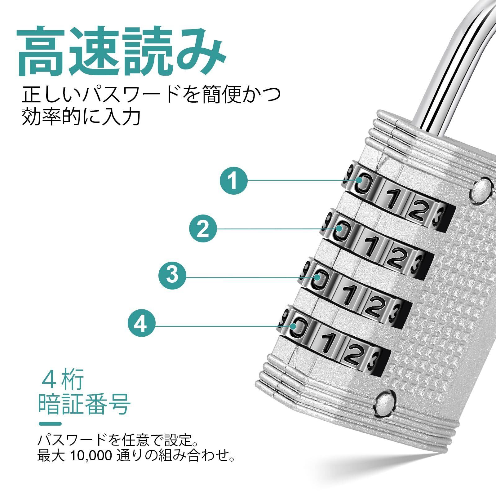 【特価セール】ZHEGE ダイヤル式南京錠 番号 防水 屋外 4桁 盗難防止 ポスト 鍵 ロッカー 日本語説明書付き(シルバー)