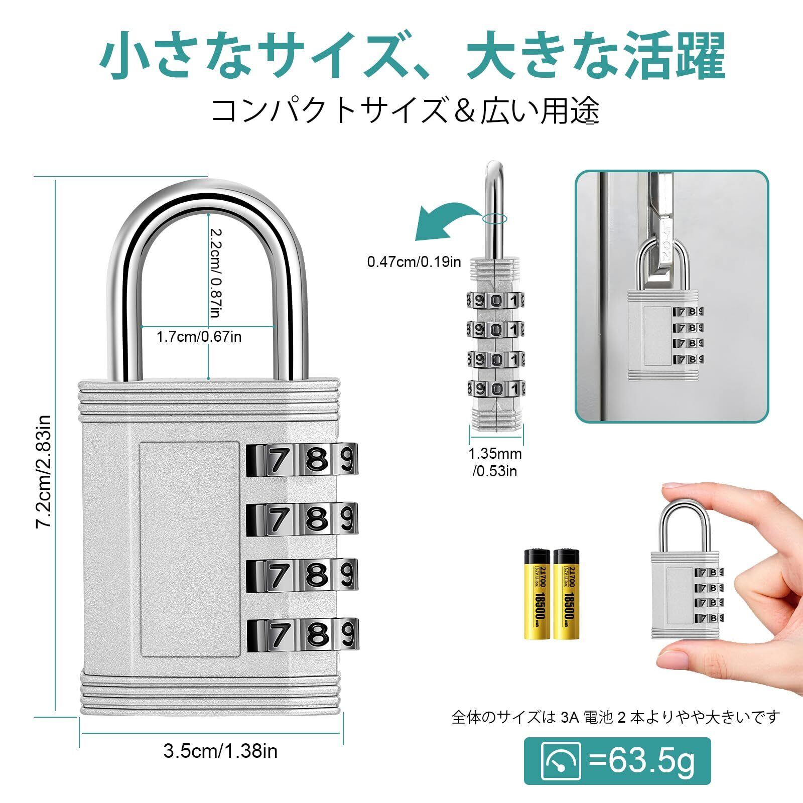▶4桁ダイヤル式:zhege ダイヤル式南京錠4桁の組み合わせは10,000通りあり、独自のコードを設定する選択肢が広がります。4桁のダイヤルは、3桁のダイヤルの10倍解読しにくいように設計されています。