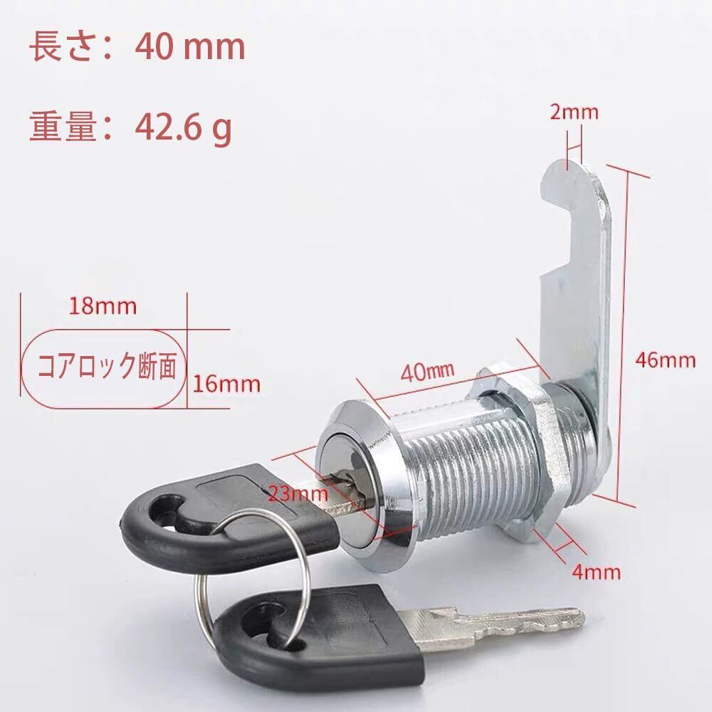 シリンダー錠 カムロック 郵便ポスト/ロッカー/ショーケースなどに 食器棚 金属 補助錠 1セットにつき2個キー付き (スタンドアロン型)(1セット) (40mm 1セット)