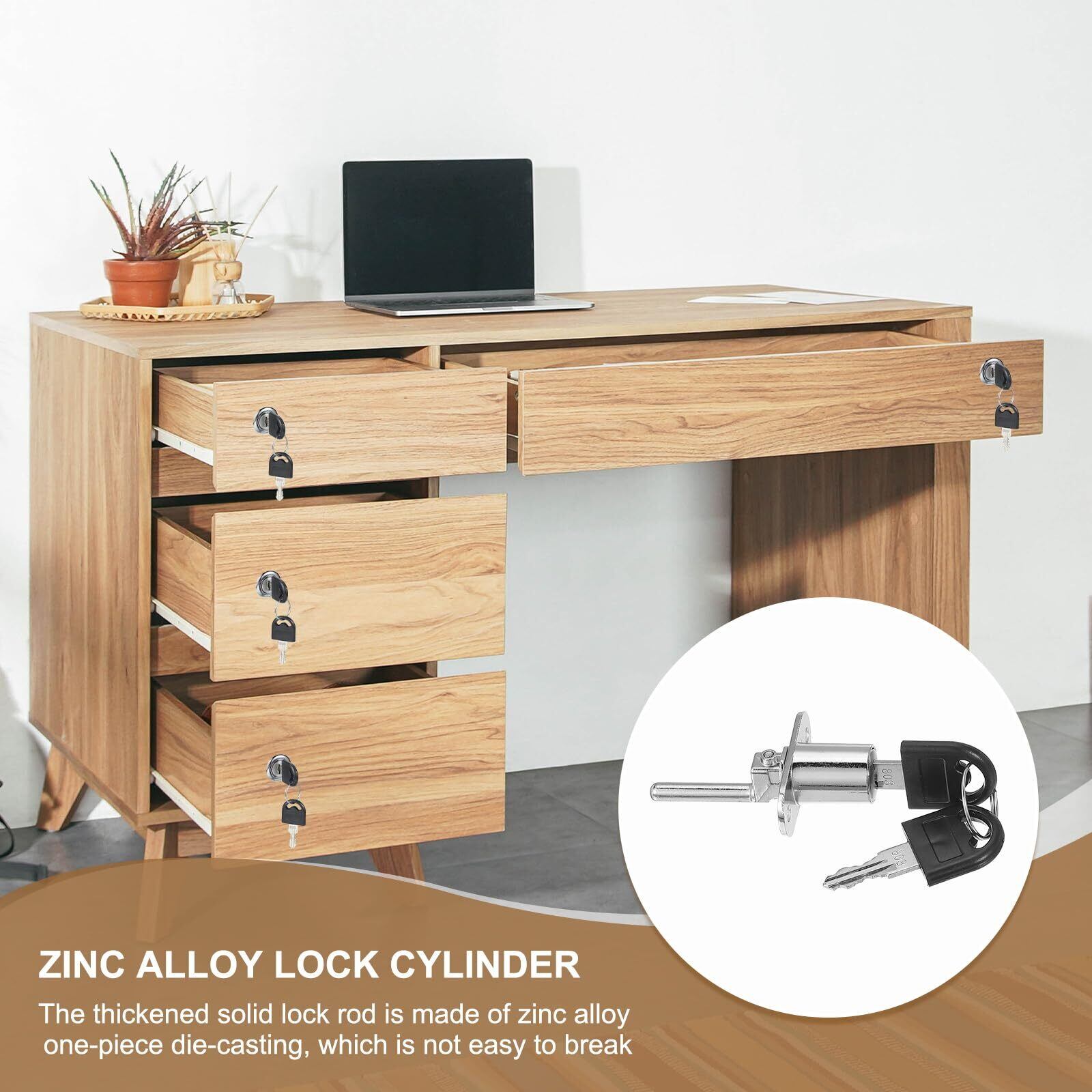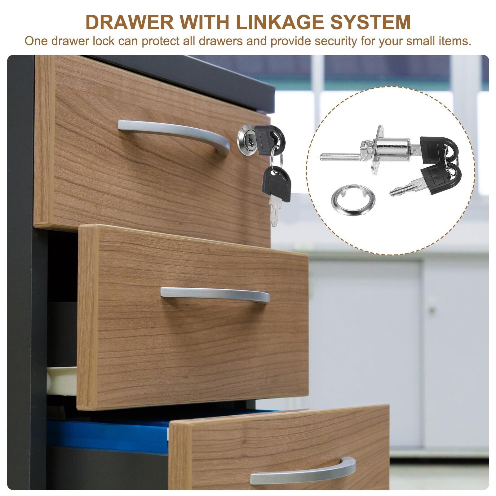 耐久性のある素材:引き出しロックは、安全で錆びにくく耐久性があり、長い間再利用できる亜鉛合金ロックシリンダーで作られています。厚いソリッドロック棒は亜鉛合金の一体成形で作られており、簡単に壊れません