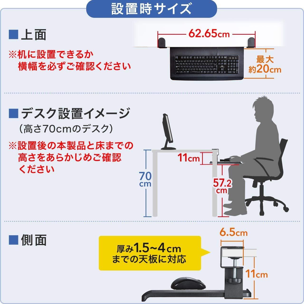 【在庫セール】サンワダイレクト キーボードスライダー 後付け デスク クランプ フルキーボード マウス収納対応 Sサイズ(※設置サイズご確認ください) 100-KB004