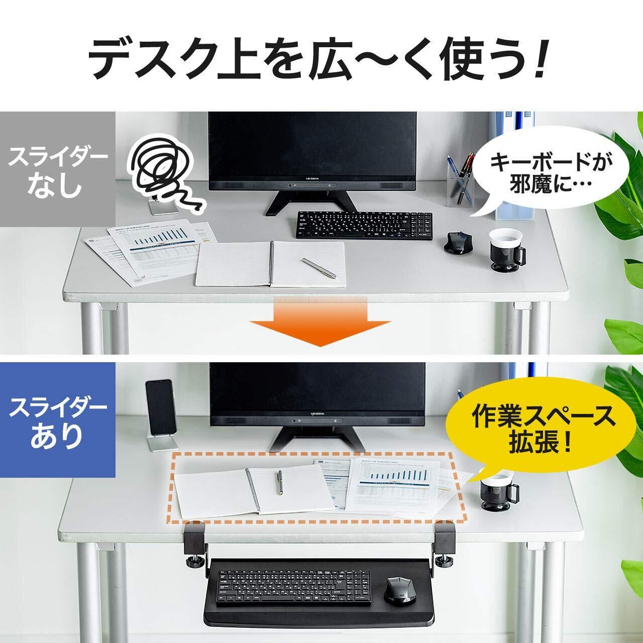 サンワダイレクト キーボードスライダー 後付け デスク クランプ フルキーボード マウス収納対応 Sサイズ(※設置サイズご確認ください) 100-KB004