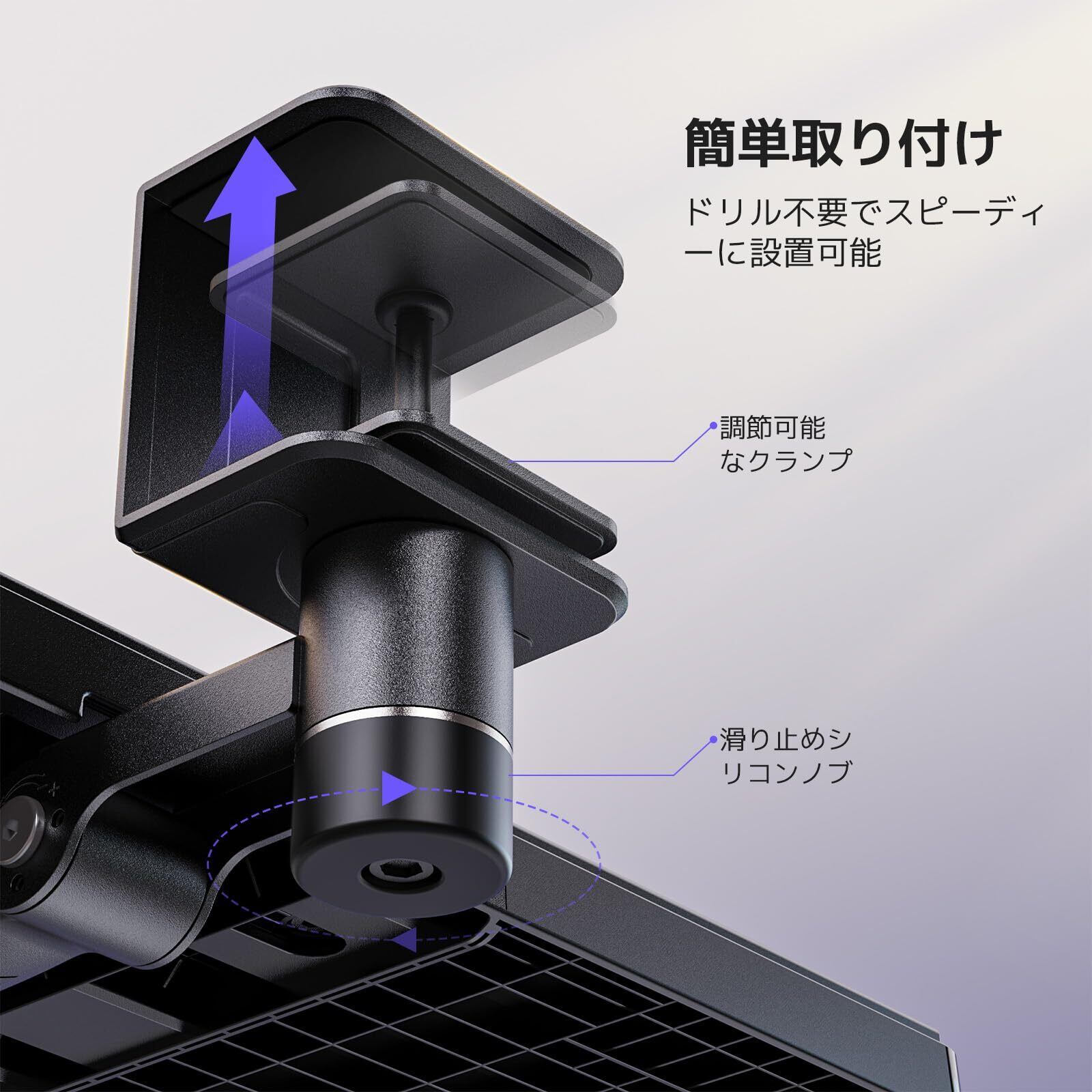人間工学に基づいたキーボードスタンドを搭載し、タイピング角度を自由に調節可能。首の負担を軽減すると同時に、専用のリストレストが手首の圧力を和らげます。さらに、360°水平回転、チルト調節の機能を備え、あらゆるタイピング姿勢に対応。快適性とサポート性を高めます。また、Cクランプの内側にはシリコンパッドが付いており、テーブルを傷から守ります。
