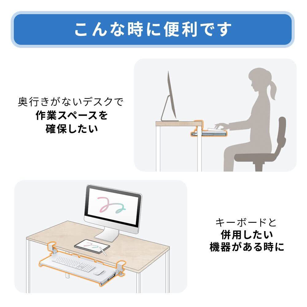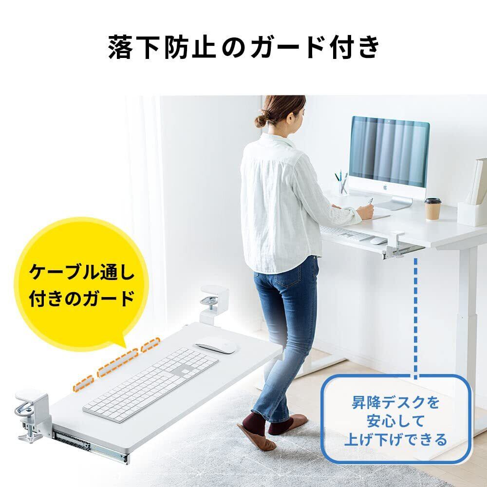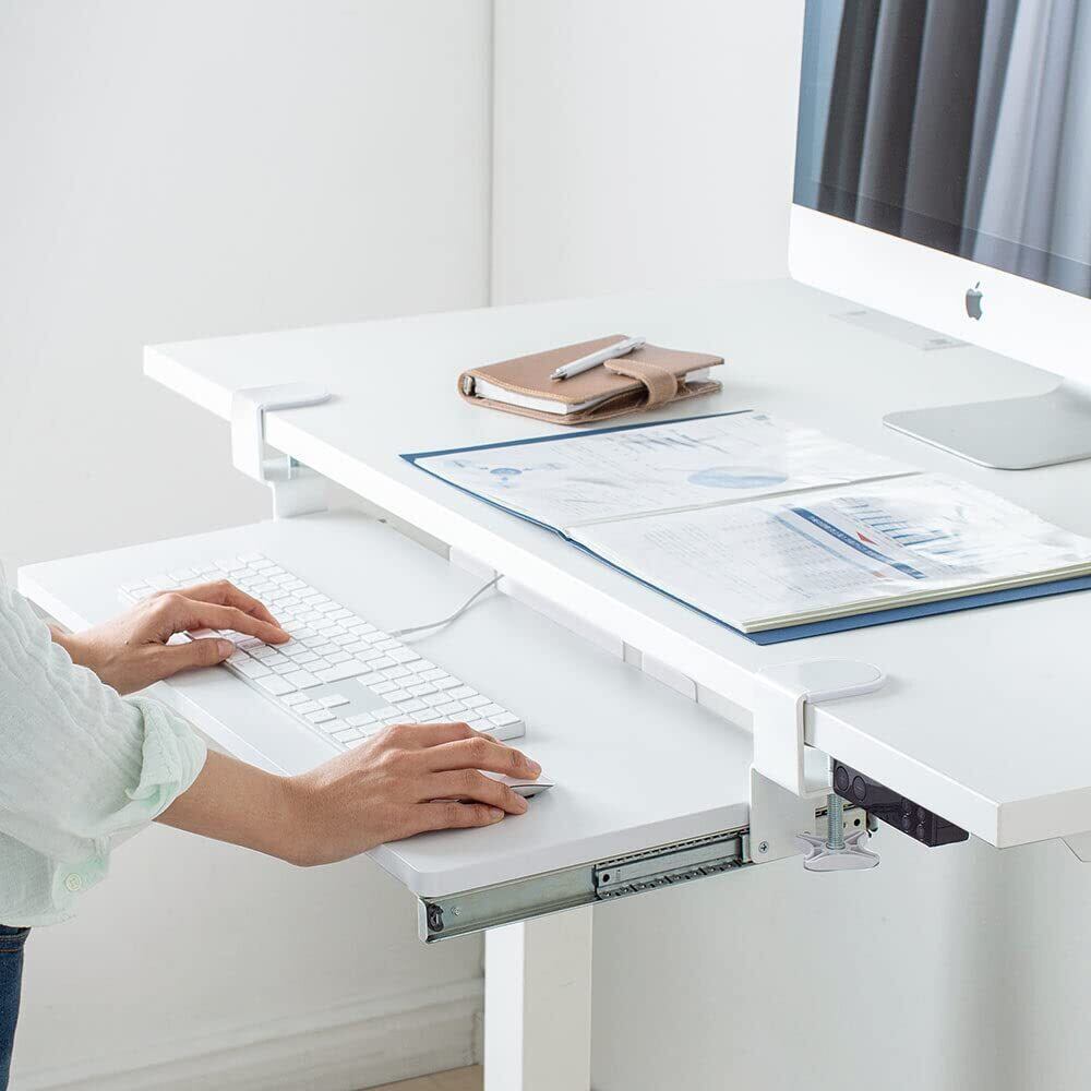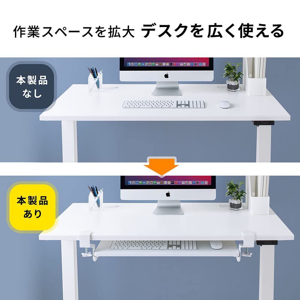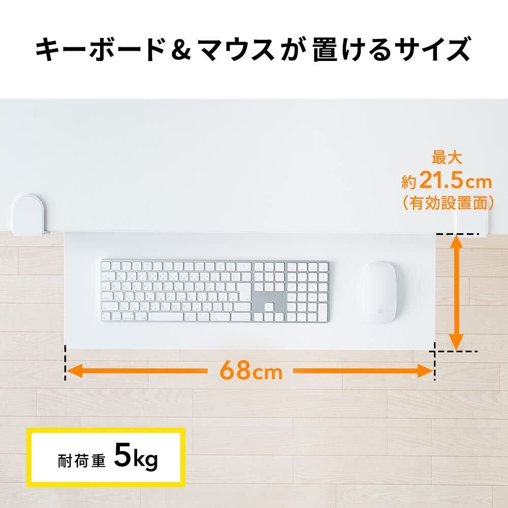 イーサプライ キーボードスライダー 後付け クランプ式 引き出し 木製 大型 マウス 天板幅68cm 奥行21cm ホワイト EEX-DESA07WH