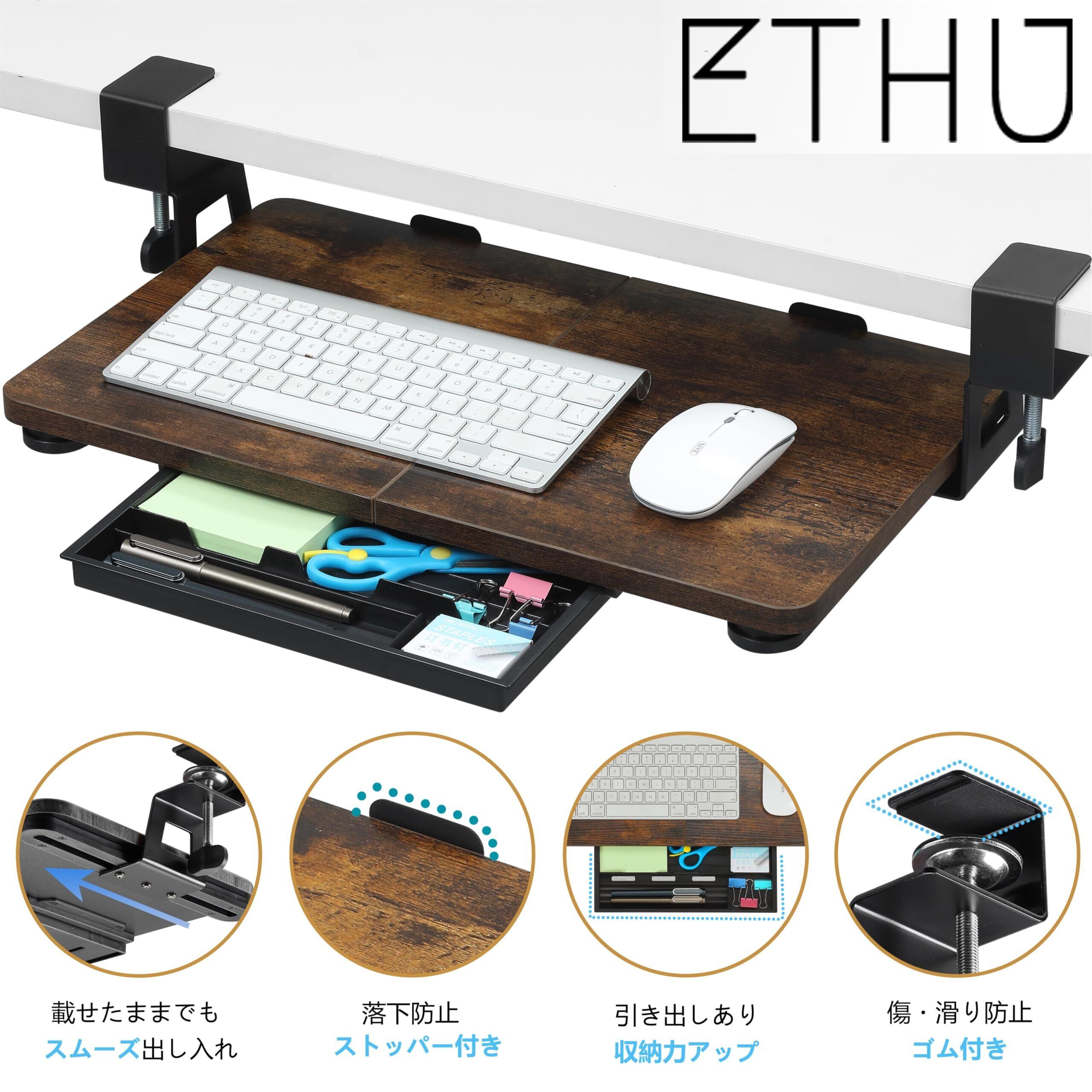【Cクランプ式】ETHUキーボードトレイは、取り付けに5分しかかかりません。コンパクトで軽量、傷に強く、重さ22ポンドまでのほとんどのキーボードとマウスを収納できます。厚さ4センチまでのデスクに簡単に取り付けられるので、デスクを傷つけたり、穴をあけたりする心配がありません。