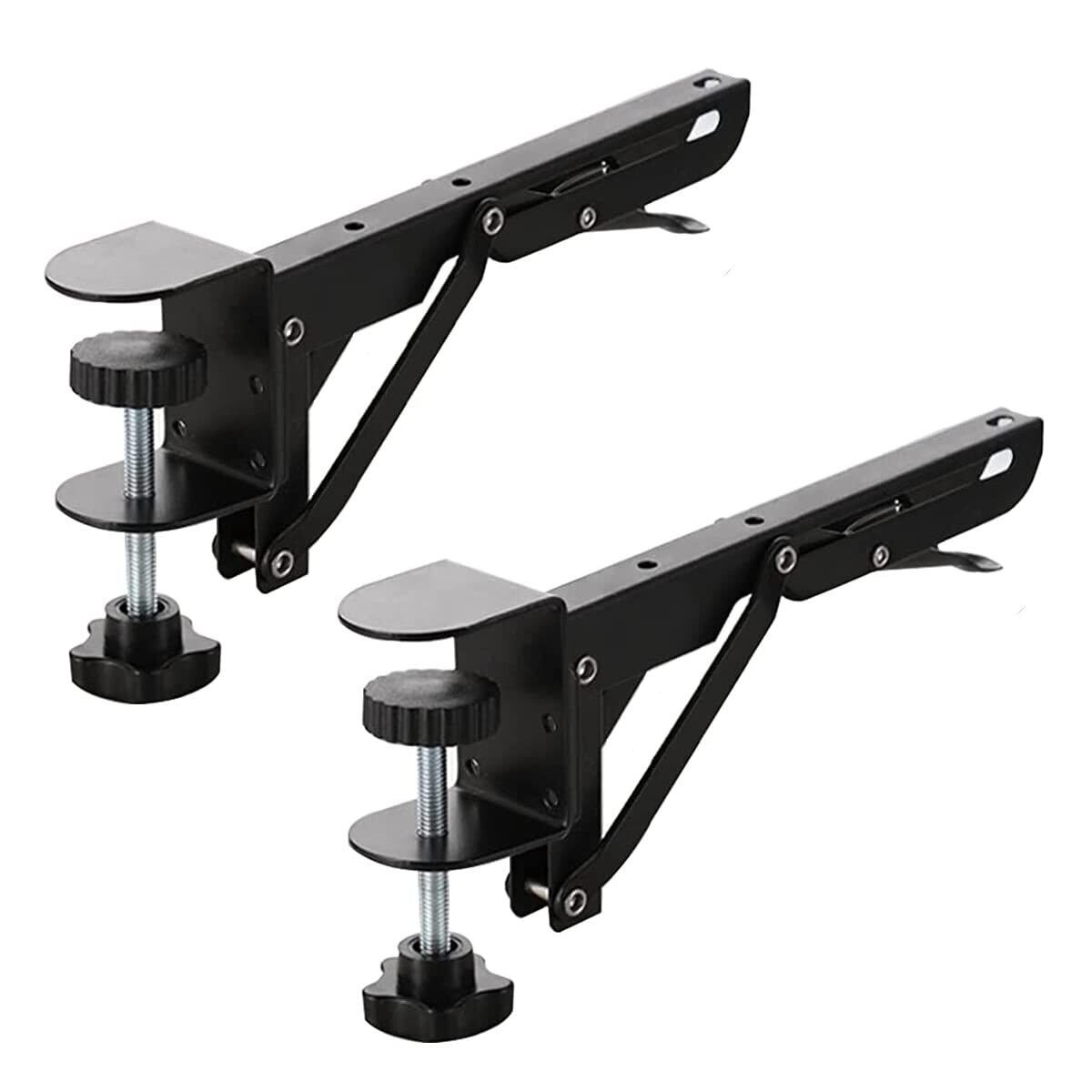 Mult デスクエクステンダー 卓上ラック 折り畳み 肘置き台 キーボードスタンド 棚受け 金具 机上 pcラック 穴を開けない クランプ式 2個入り ブラック 奥行20cm