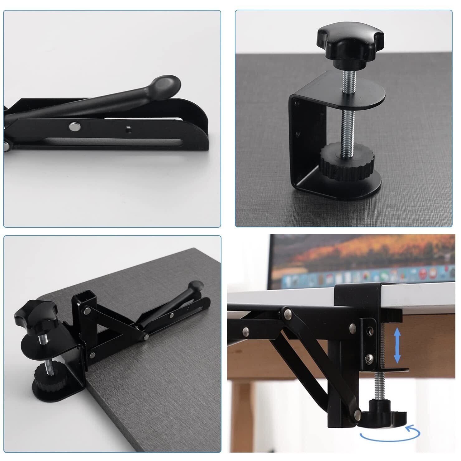 取り付けが簡単、デスクの下にクリップとアームブラケットが付いたキーボードトレイ、工具なしでデスクトップの表面を簡単に拡張できます。お気に入りのボードを追加するだけで、準備が整います。