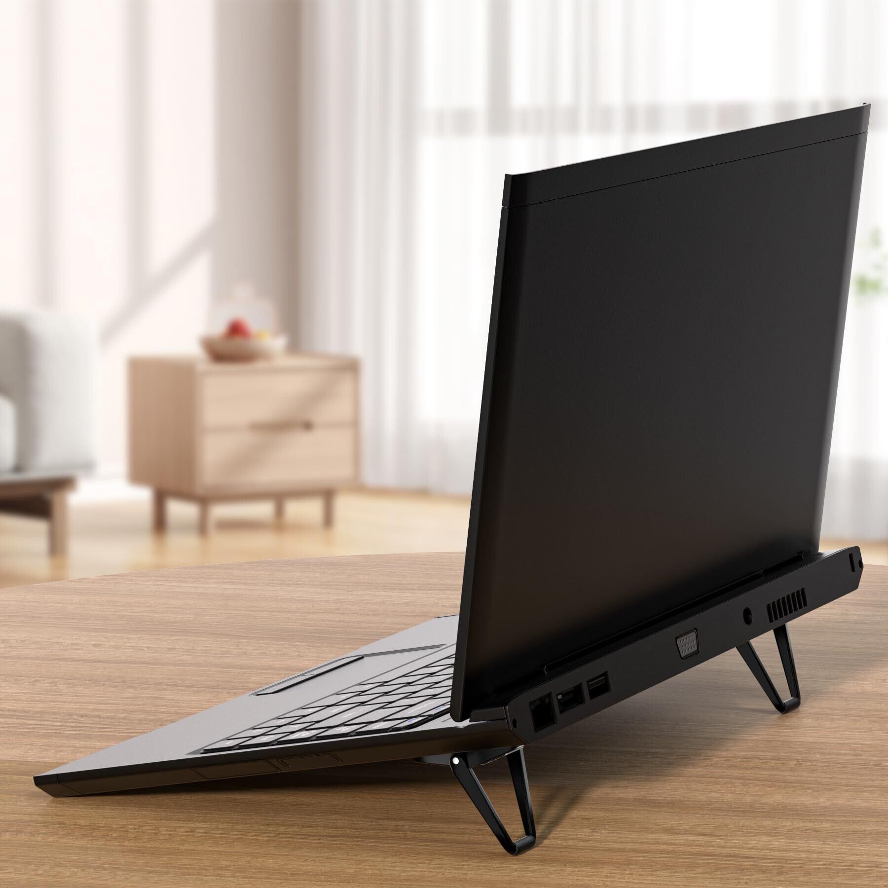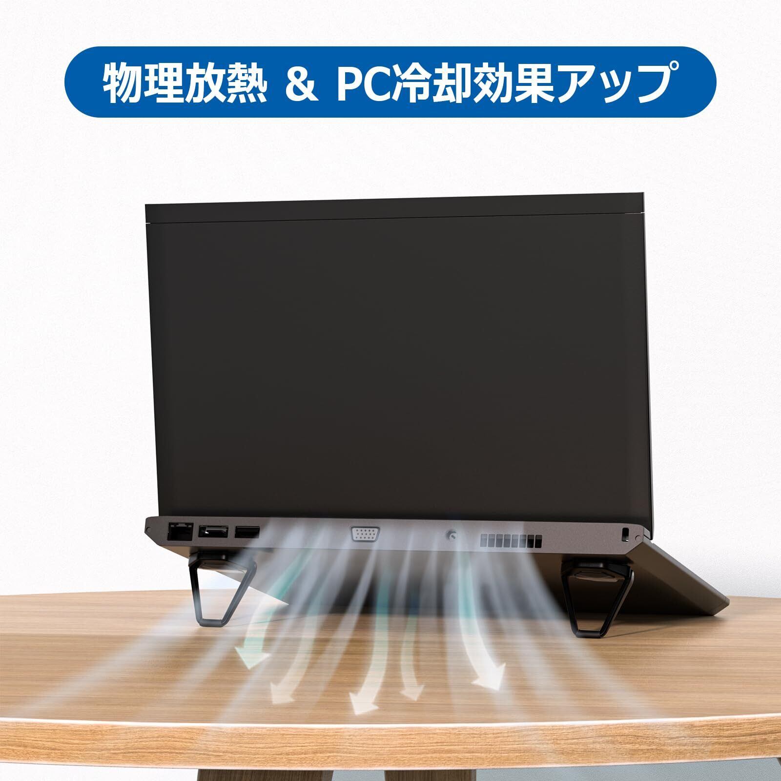 【物理的な熱放散 シンプルで効率的】この小型ノートパソコンスタンドはアルミニウム合金素材で、熱パッドとして機能し、ノートパソコンを冷却するのに役立ちます。 前傾角度とオープン設計により、優れた通気性と通気性を提供し、ノートブックの過熱を防ぎます。