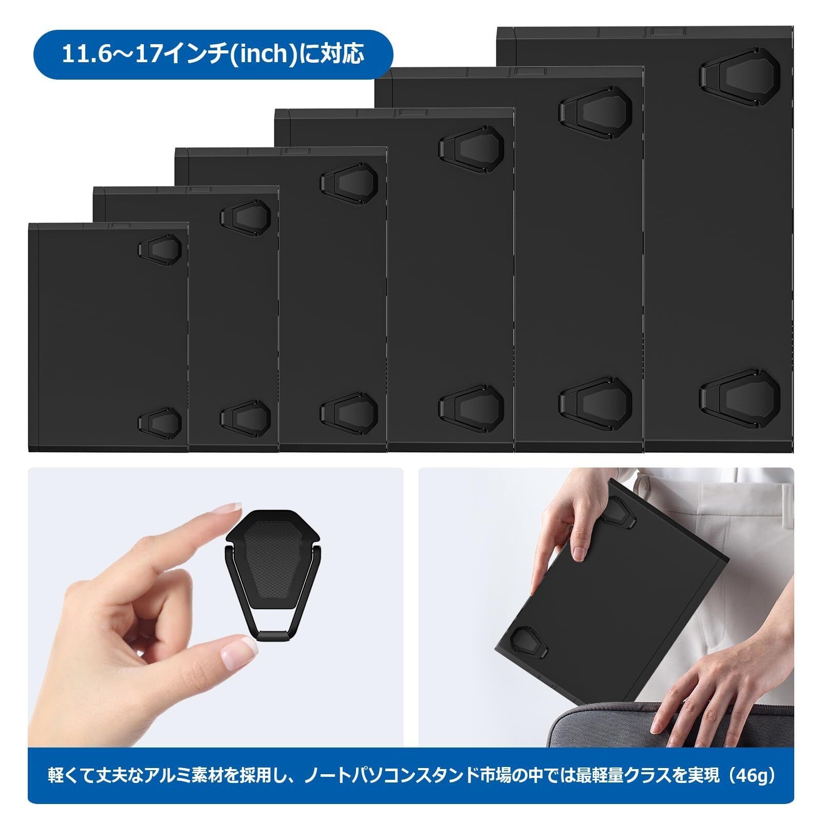 ノートパソコン スタンド-冷却 貼り付け型 強い粘着力 pcスタンド 軽量 持ち運び便利 放熱対策 滑り止め 軽量 2個入り